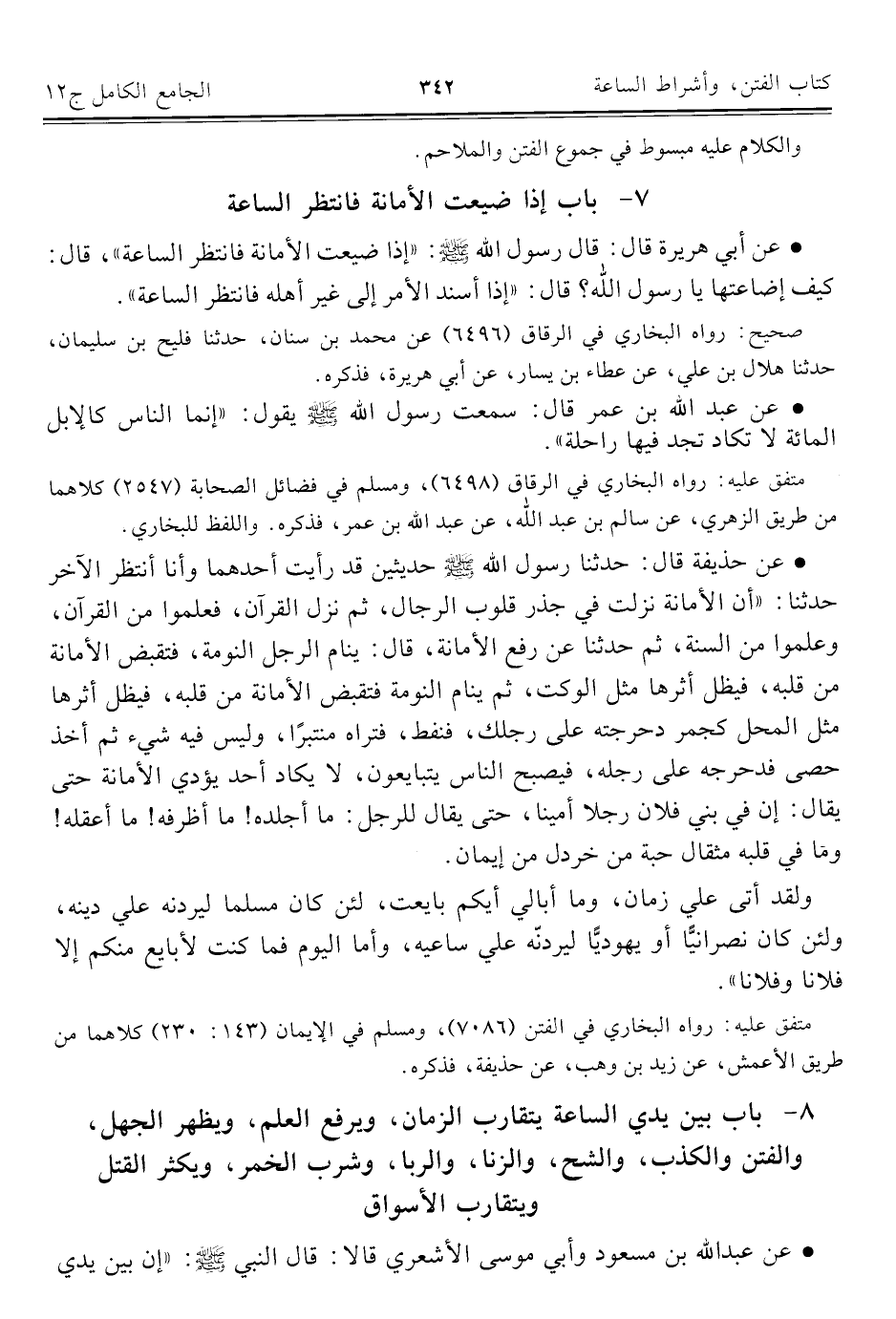 ٧ - باب إذا ضيعت الأمانة فانتظر الساعة