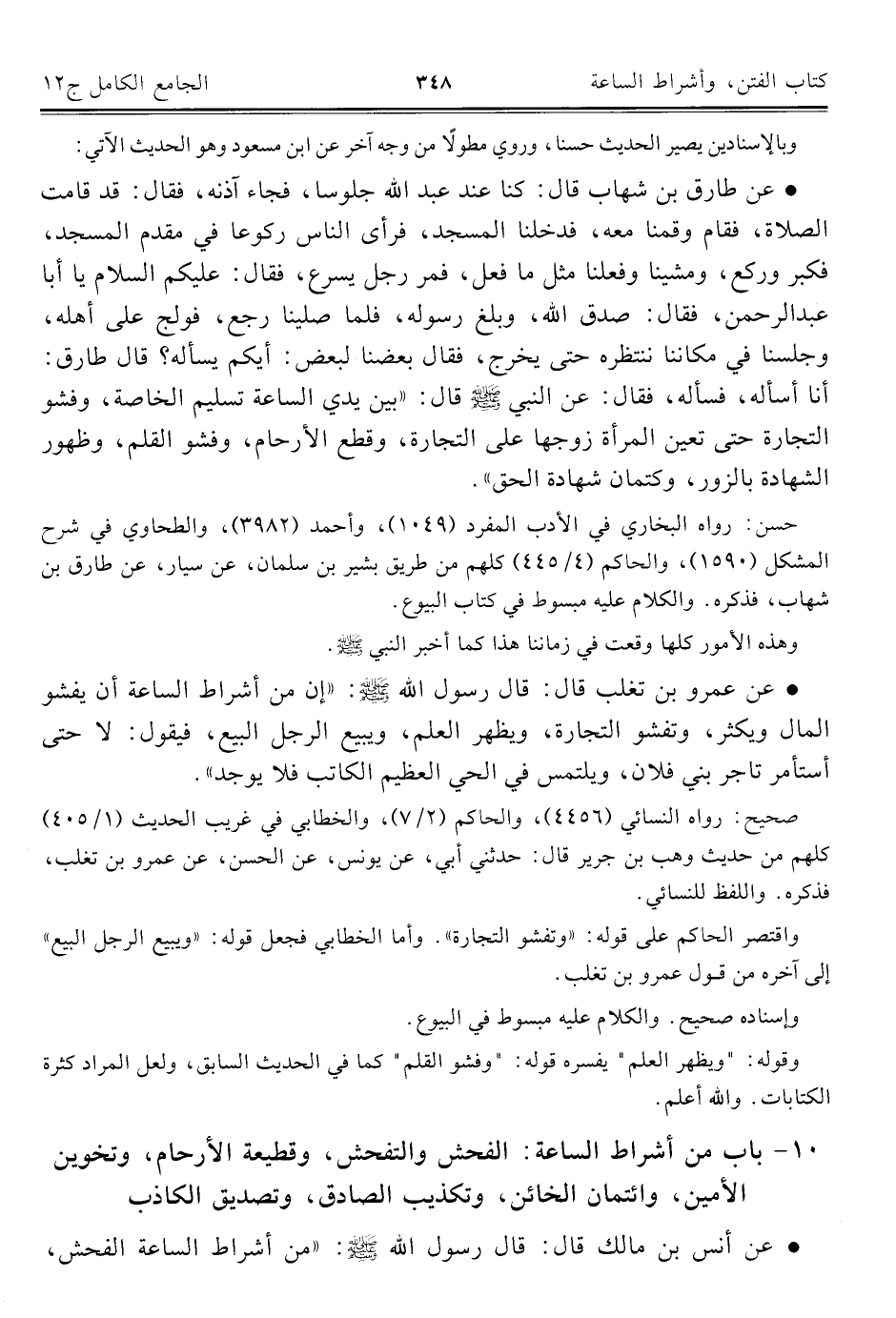 كتاب الجامع الكامل في الحديث الصحيح الشامل المرتب على أبواب الفقه (اسم الجزء: 12)