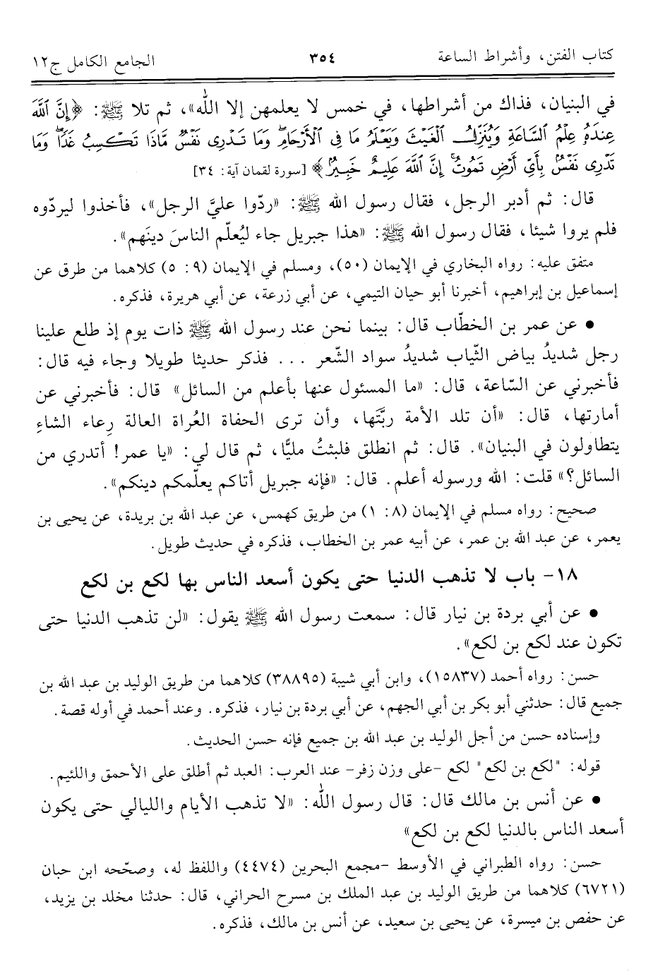 كتاب الجامع الكامل في الحديث الصحيح الشامل المرتب على أبواب الفقه (اسم الجزء: 12)