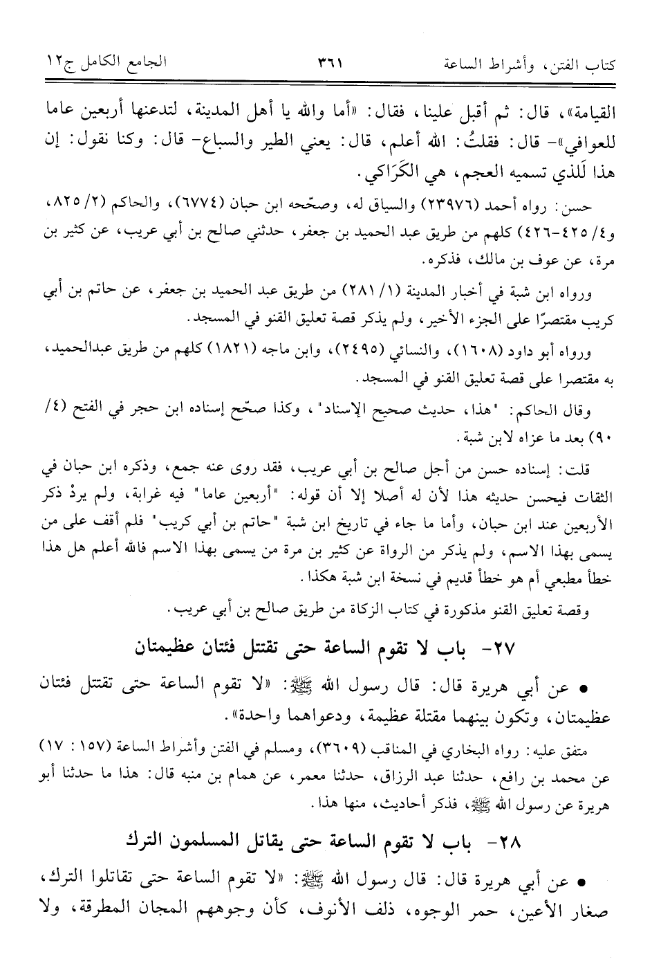 كتاب الجامع الكامل في الحديث الصحيح الشامل المرتب على أبواب الفقه (اسم الجزء: 12)