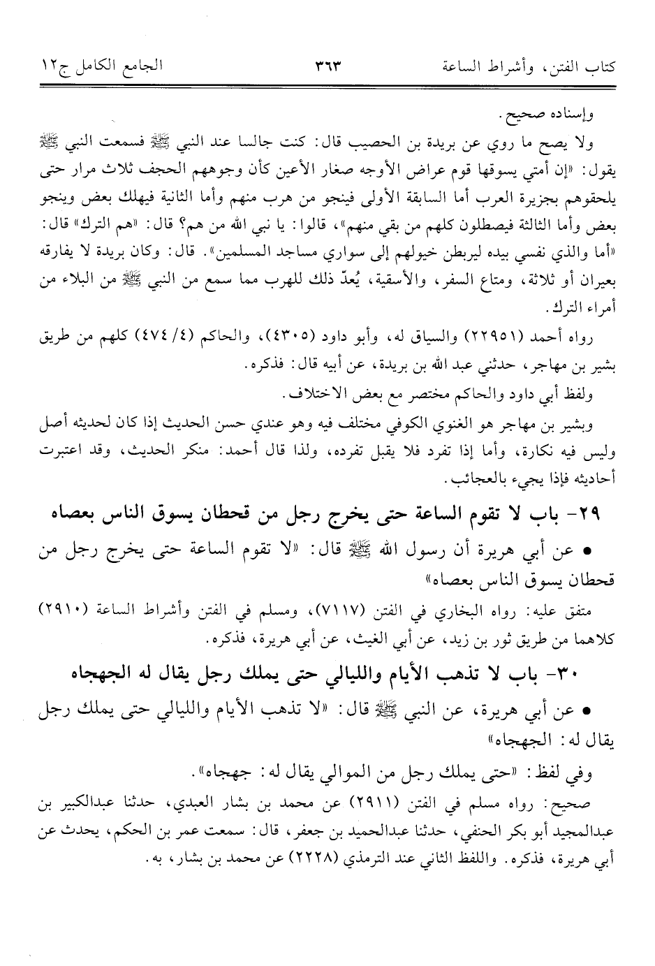 كتاب الجامع الكامل في الحديث الصحيح الشامل المرتب على أبواب الفقه (اسم الجزء: 12)