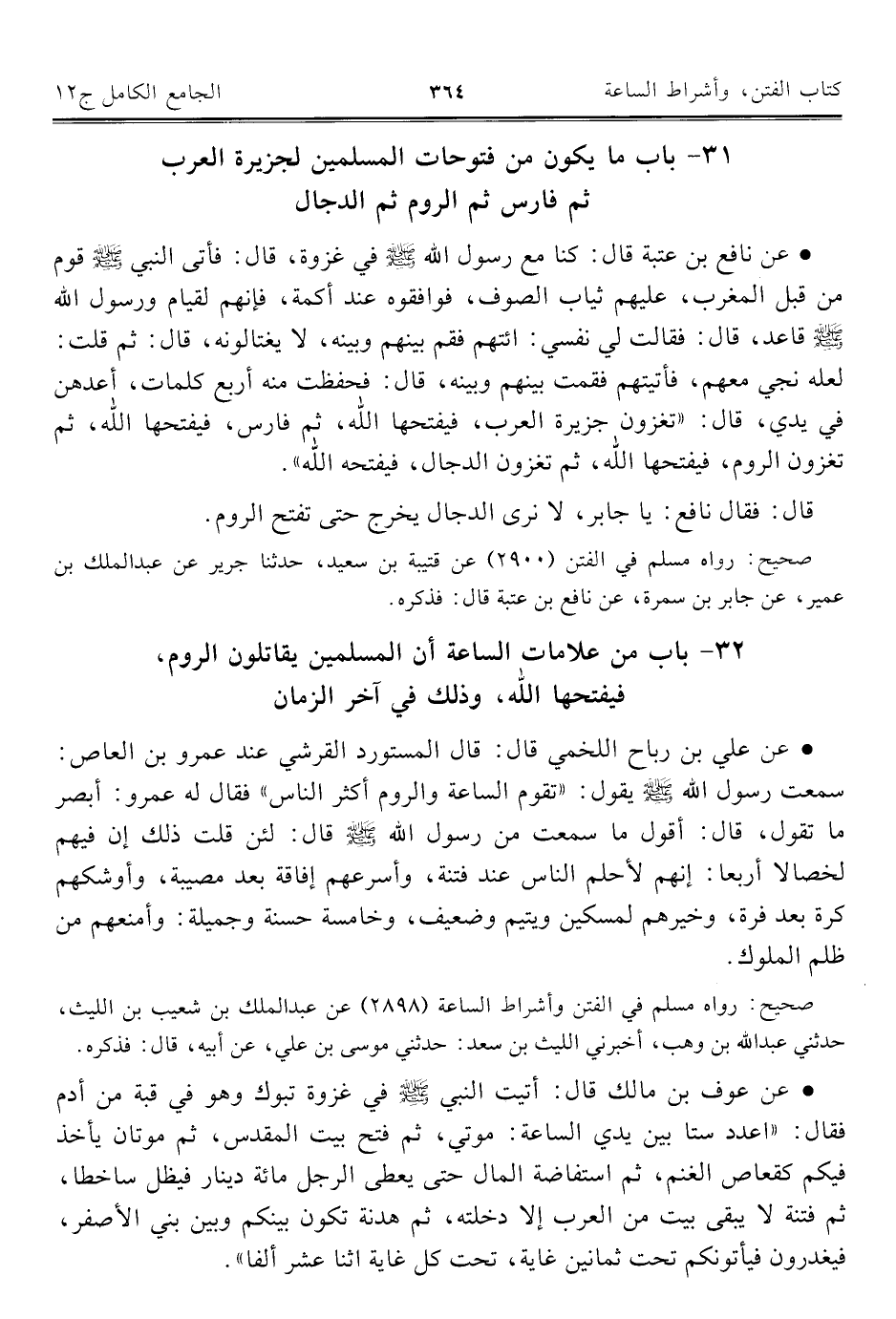 ٣١ - باب ما يكون من فتوحات المسلمين لجزيرة العرب ثم فارس ثم الروم ثم الدجال