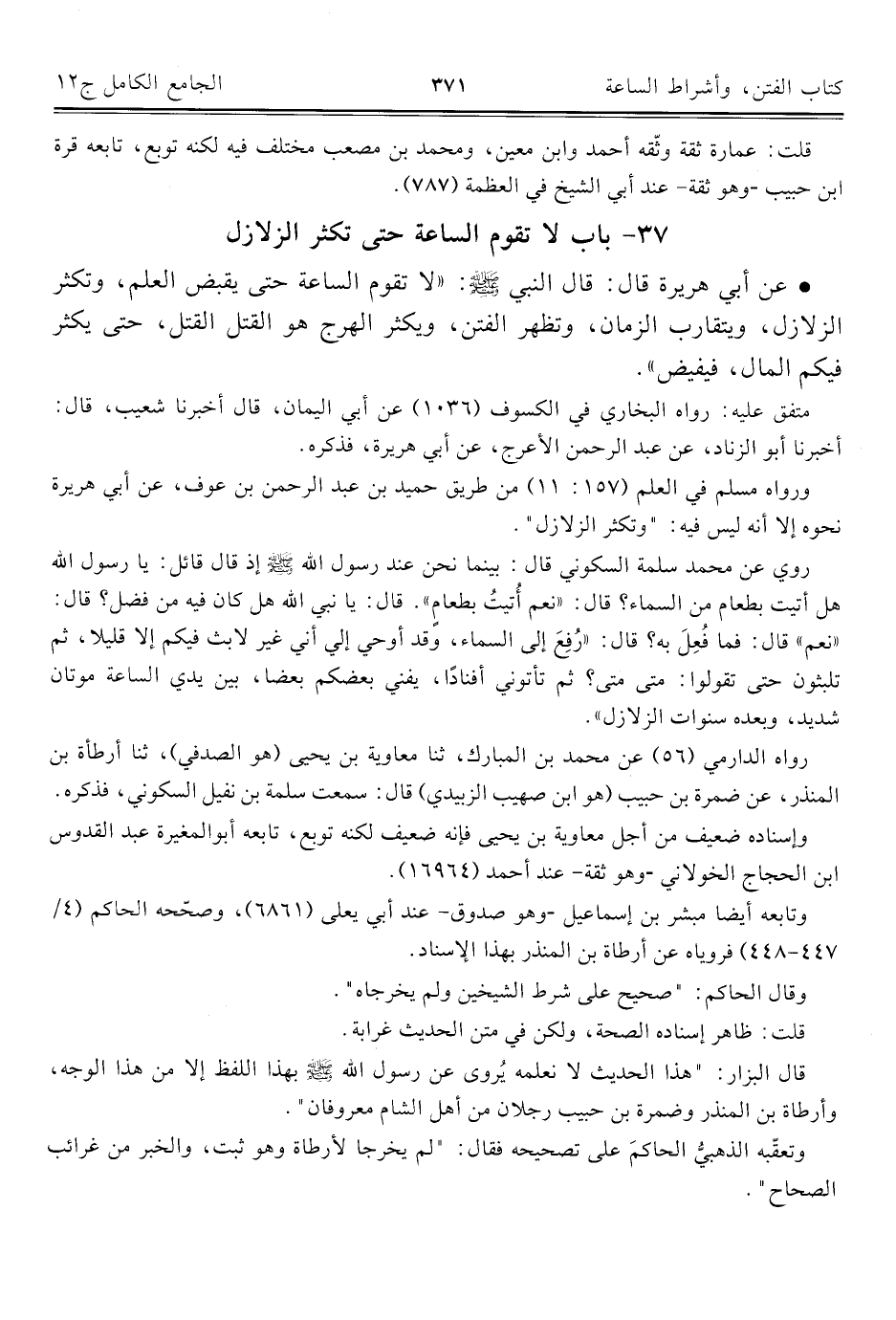 ٣٧ - باب لا تقوم الساعة حتى تكثر الزلازل
