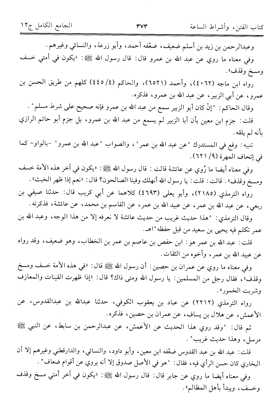 رواه الترمذيّ (٢٢١٢) عن عباد بن يعقوب الكوفي، حدّثنا عبد اللَّه بن عبد القدوس، عن الأعمش، عن هلال بن يساف، عن عمران بن حصين، فذكره.