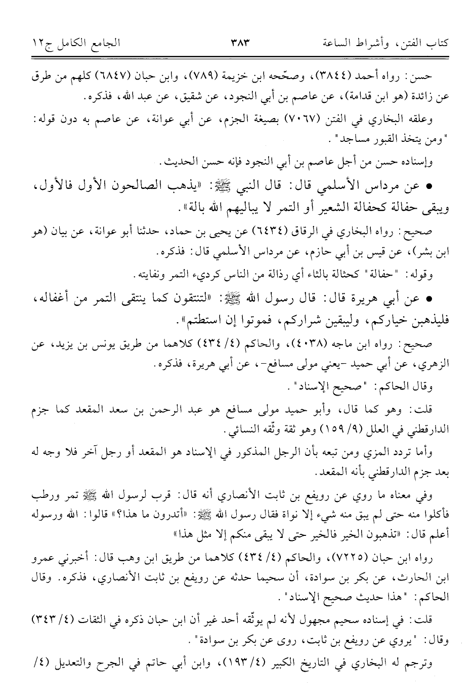كتاب الجامع الكامل في الحديث الصحيح الشامل المرتب على أبواب الفقه (اسم الجزء: 12)
