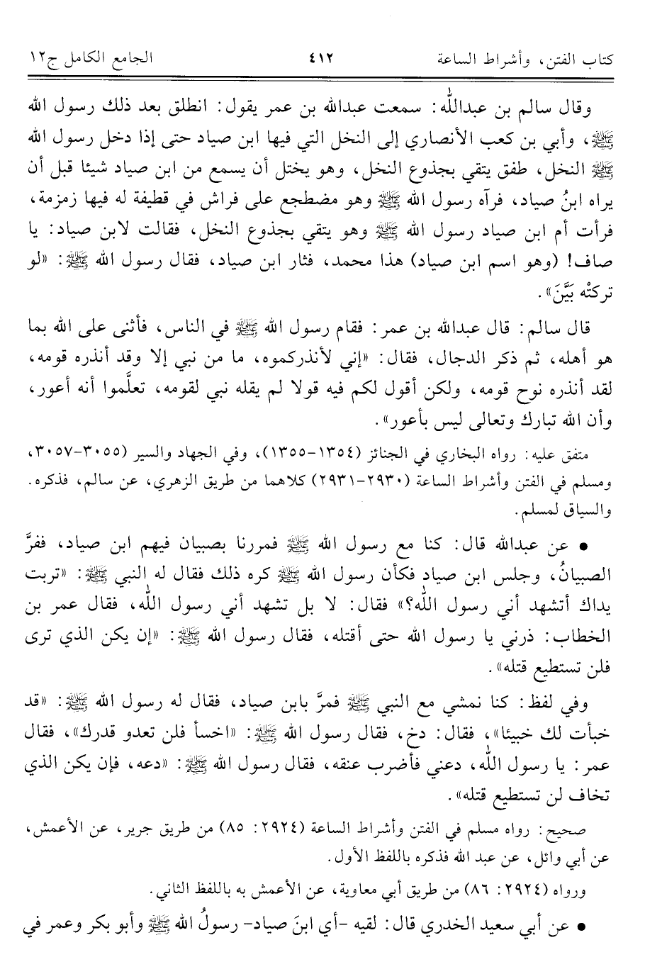 • عن أبي سعيد الخدري قال: لقيه -أي ابنَ صياد- رسولُ اللَّه -صلى اللَّه عليه وسلم- وأبو بكر وعمر في