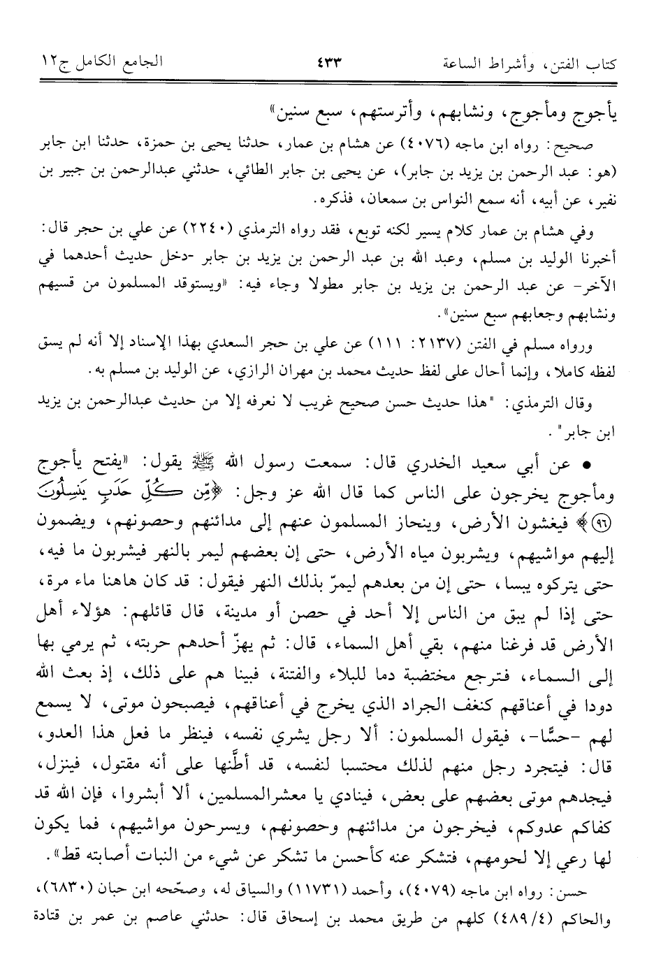 كتاب الجامع الكامل في الحديث الصحيح الشامل المرتب على أبواب الفقه (اسم الجزء: 12)