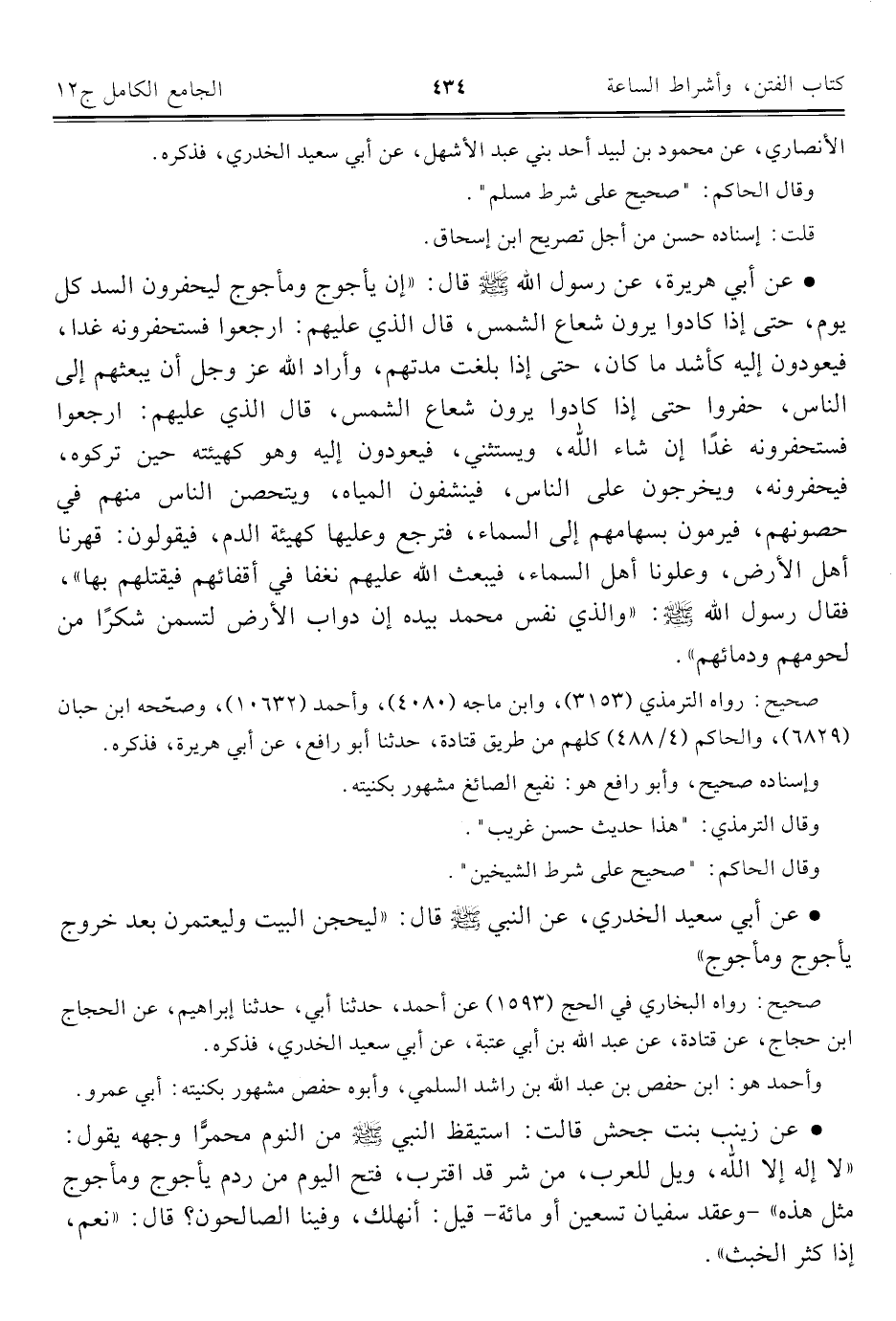 كتاب الجامع الكامل في الحديث الصحيح الشامل المرتب على أبواب الفقه (اسم الجزء: 12)