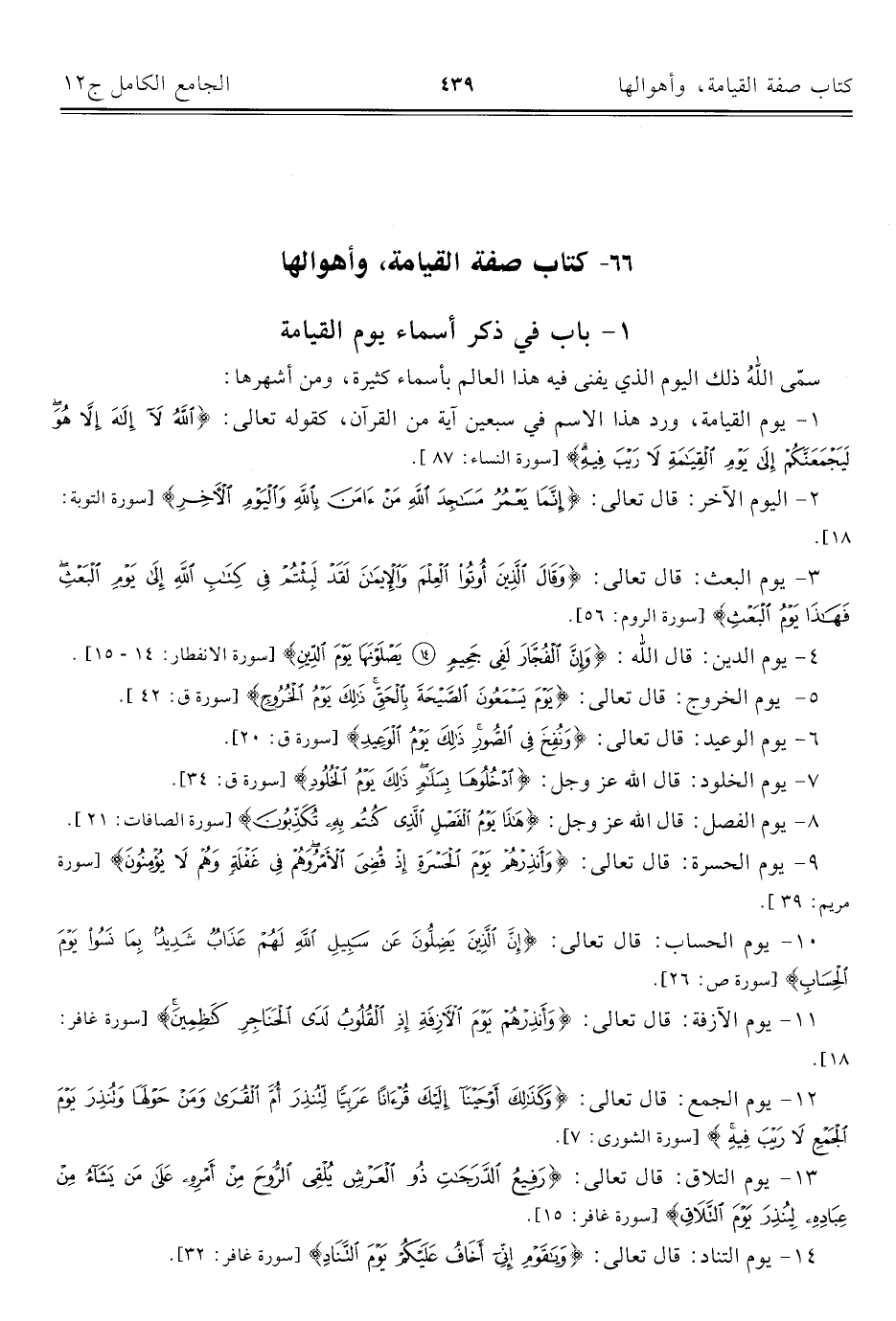 ٦٦ - كتاب صفة القيامة، وأهوالها