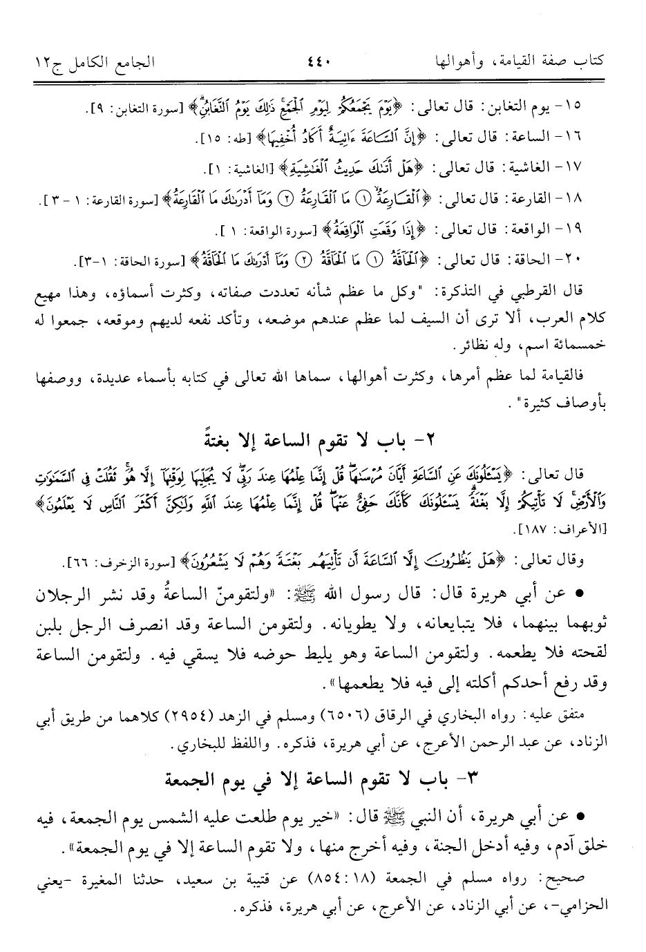 ٣ - باب لا تقوم الساعة إلا في يوم الجمعة