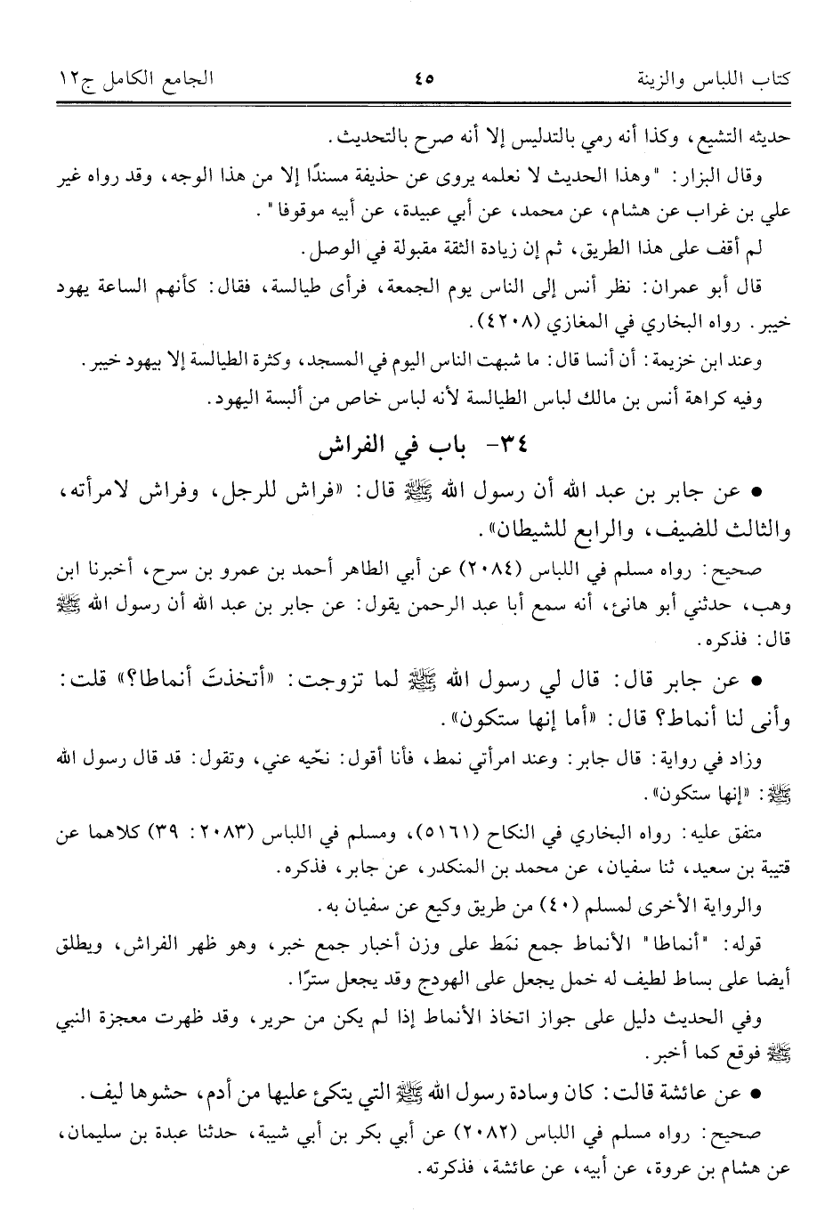 ٣٤ - باب في الفراش