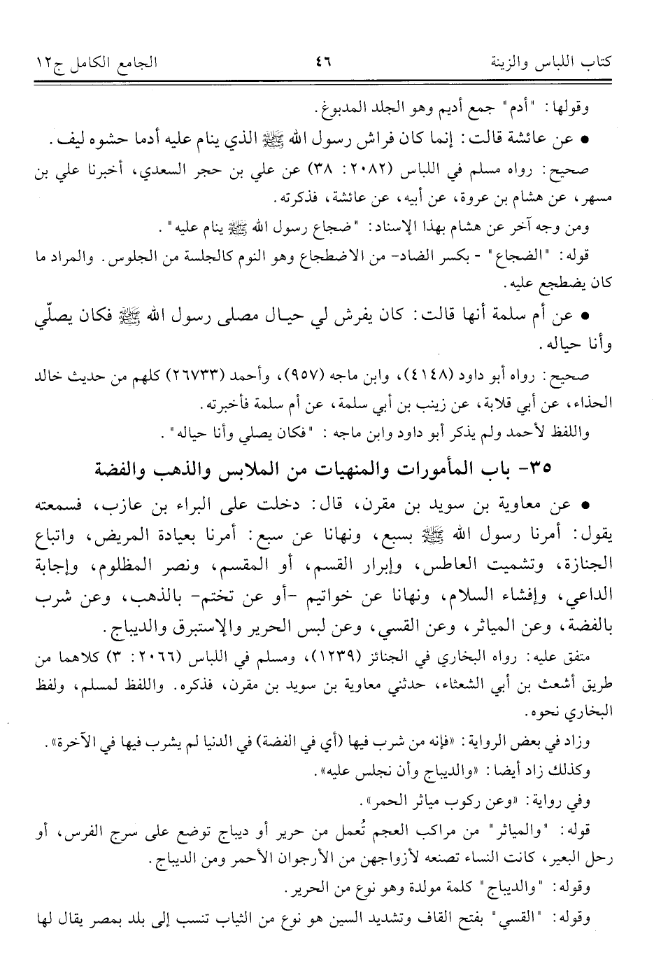 ٣٥ - باب المأمورات والمنهيات من الملابس والذهب والفضة