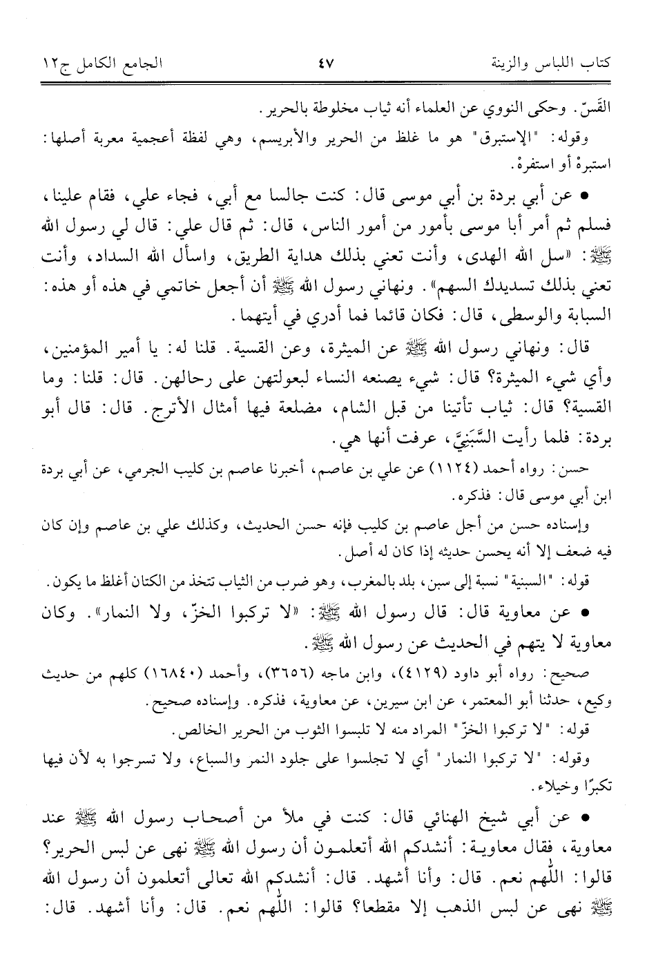 كتاب الجامع الكامل في الحديث الصحيح الشامل المرتب على أبواب الفقه (اسم الجزء: 12)