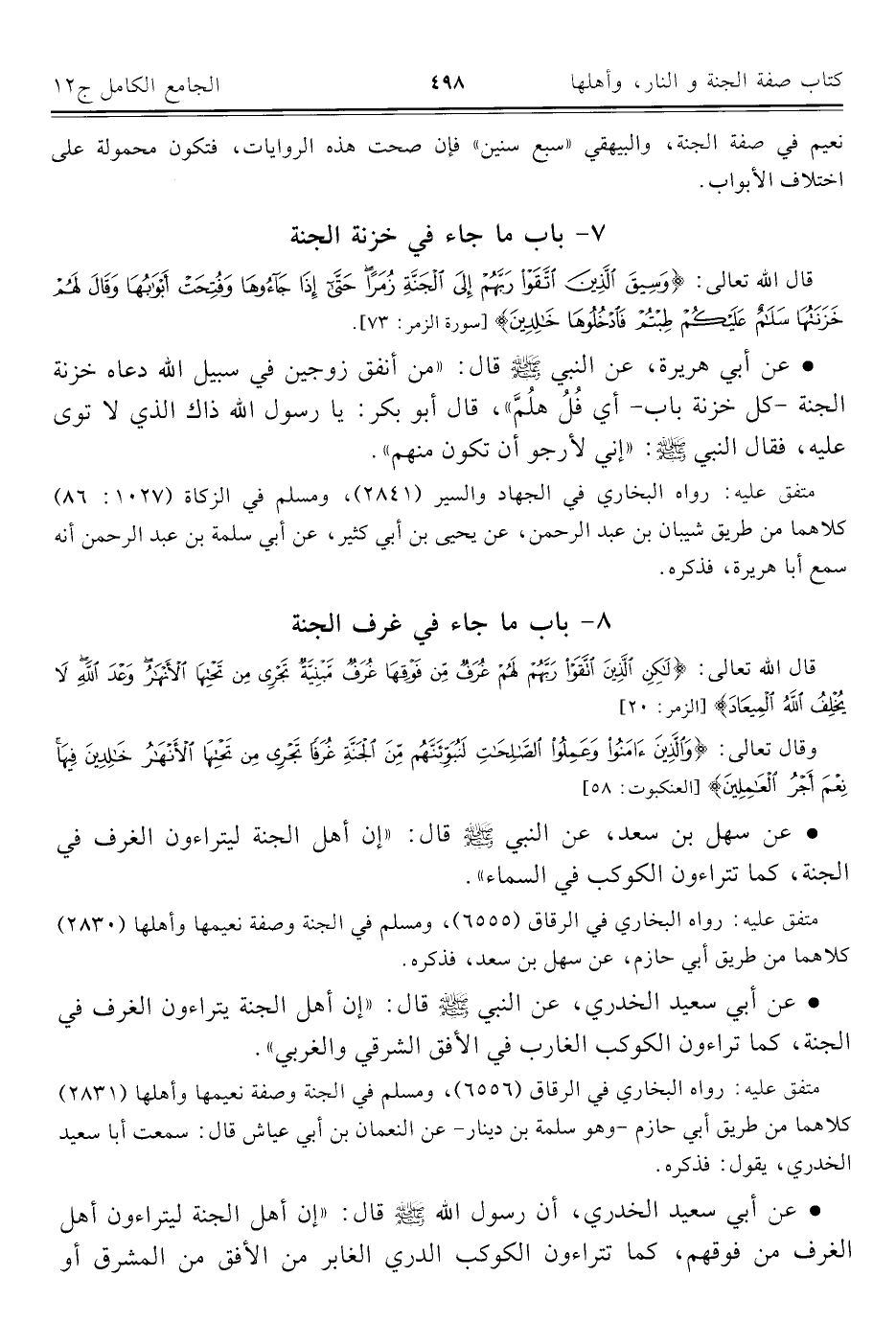 كتاب الجامع الكامل في الحديث الصحيح الشامل المرتب على أبواب الفقه (اسم الجزء: 12)
