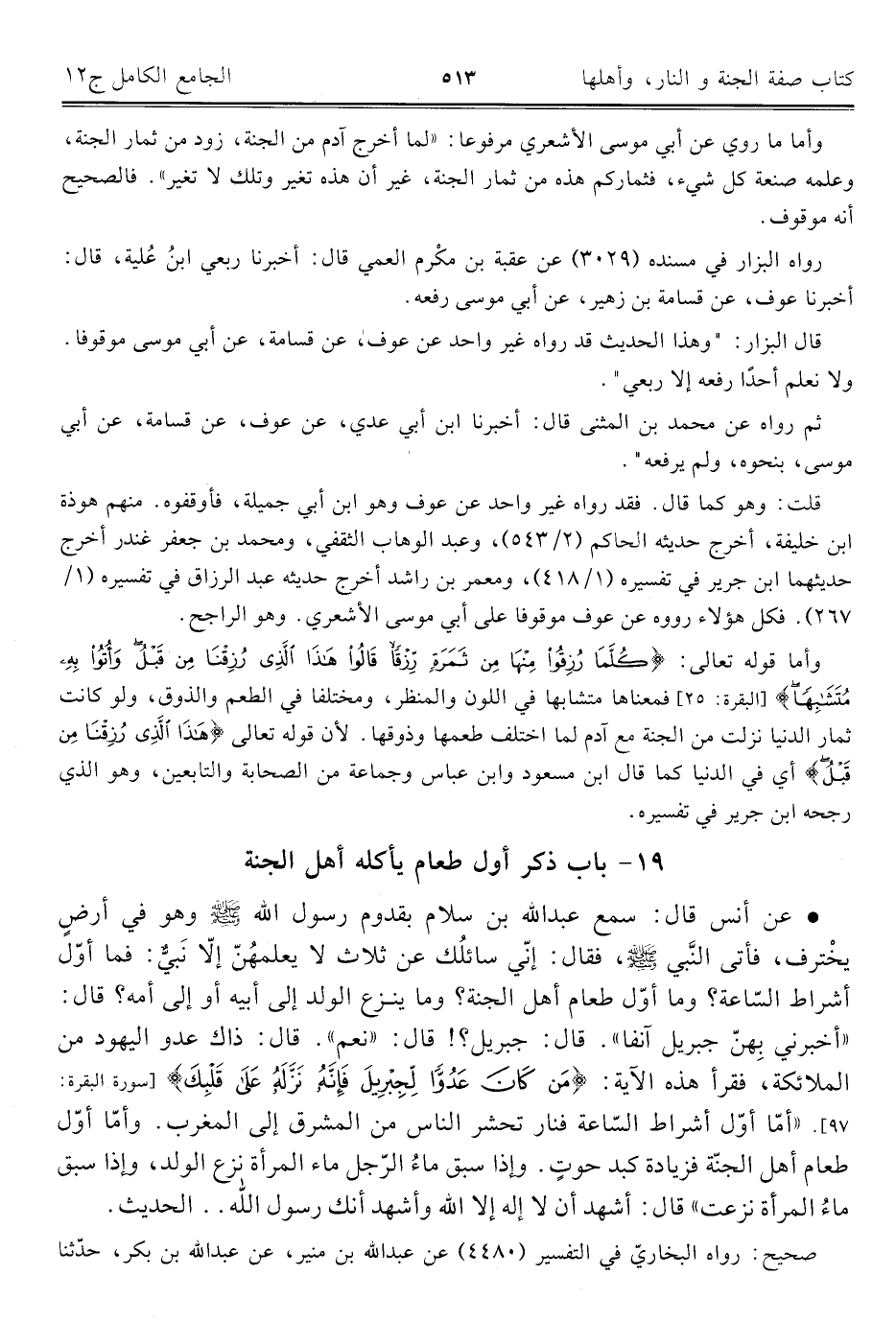 ١٩ - باب ذكر أول طعام يأكله أهل الجنة