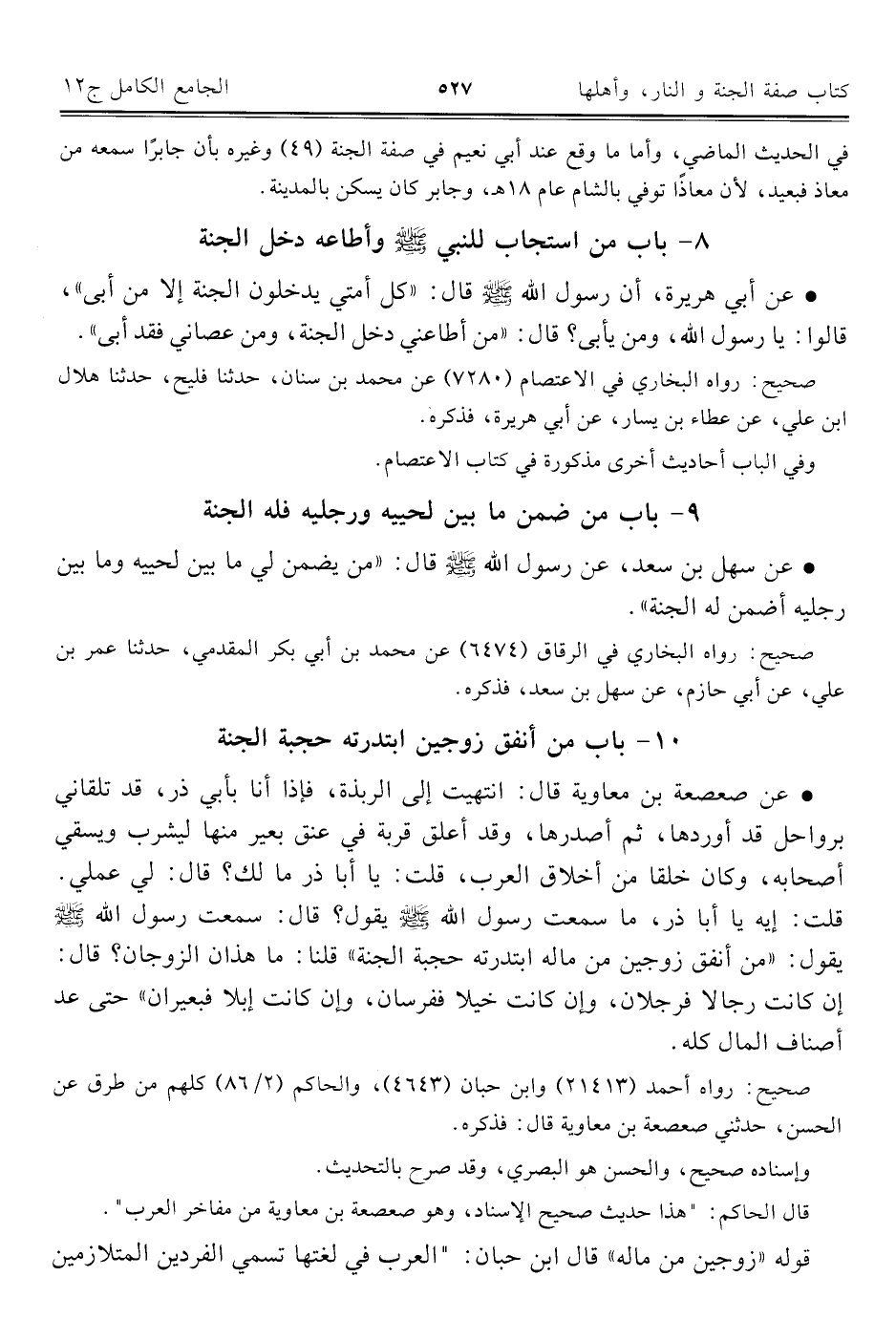كتاب الجامع الكامل في الحديث الصحيح الشامل المرتب على أبواب الفقه (اسم الجزء: 12)