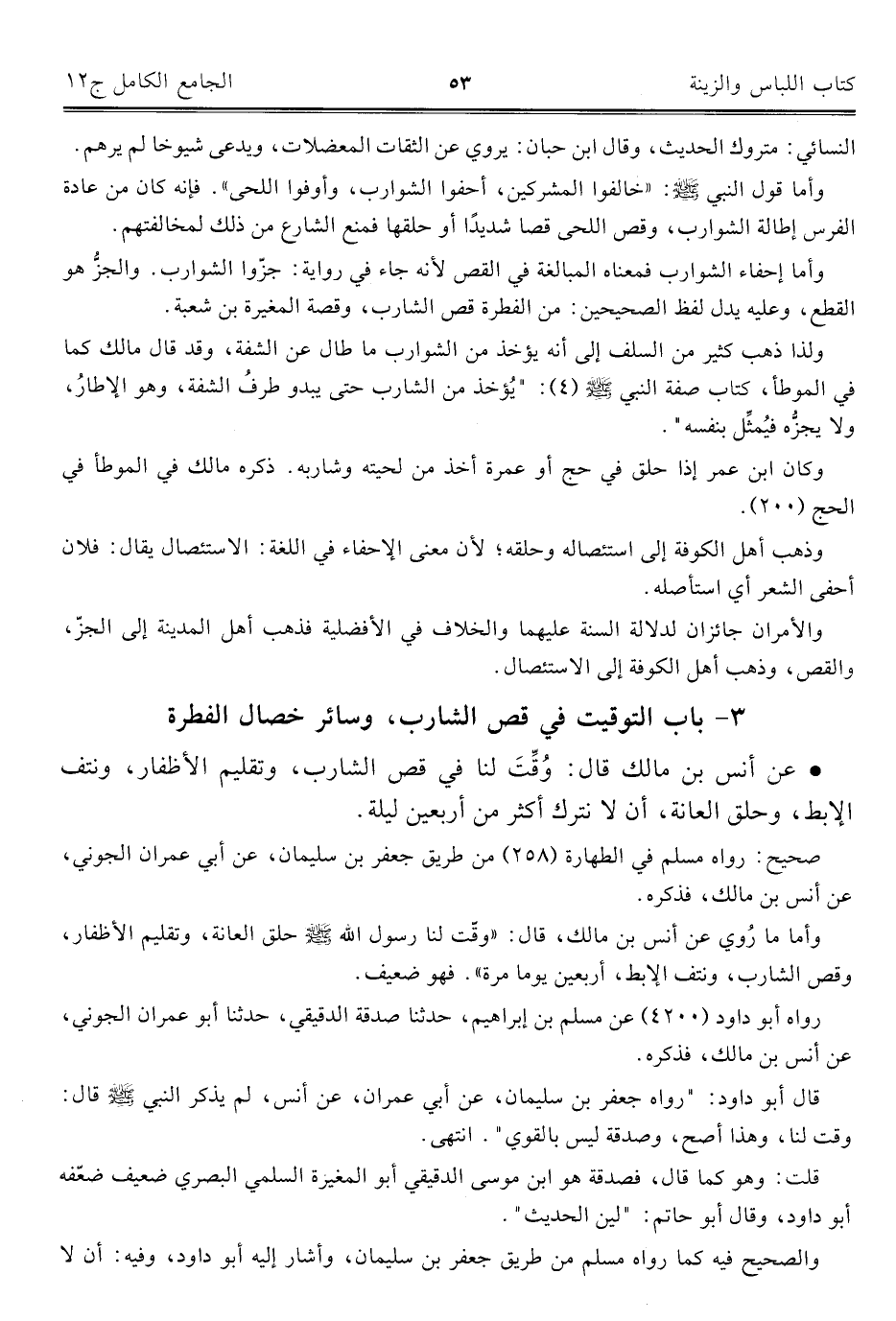كتاب الجامع الكامل في الحديث الصحيح الشامل المرتب على أبواب الفقه (اسم الجزء: 12)