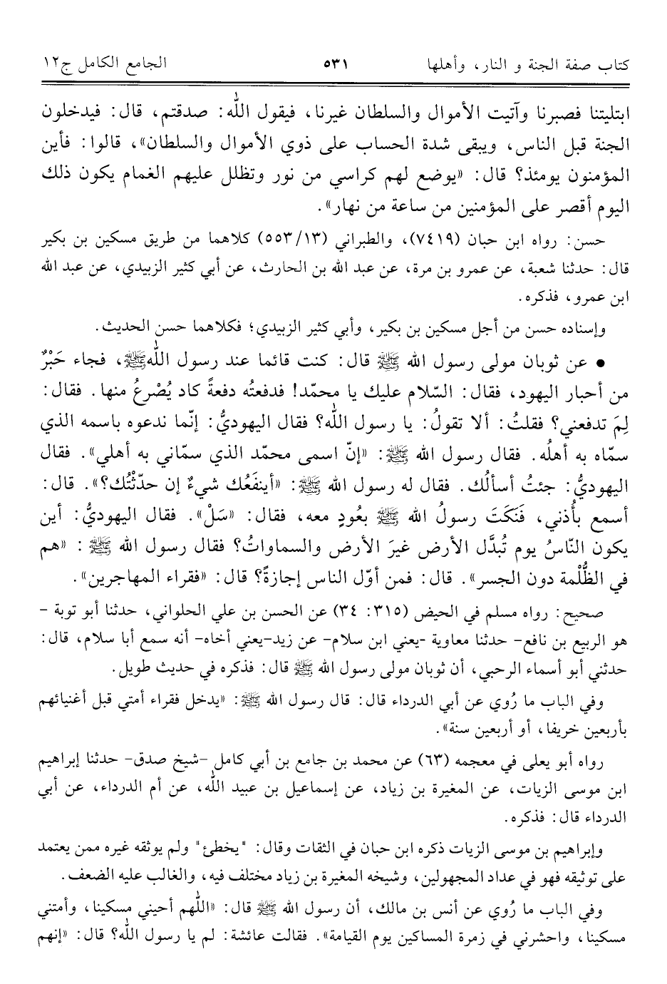 كتاب الجامع الكامل في الحديث الصحيح الشامل المرتب على أبواب الفقه (اسم الجزء: 12)