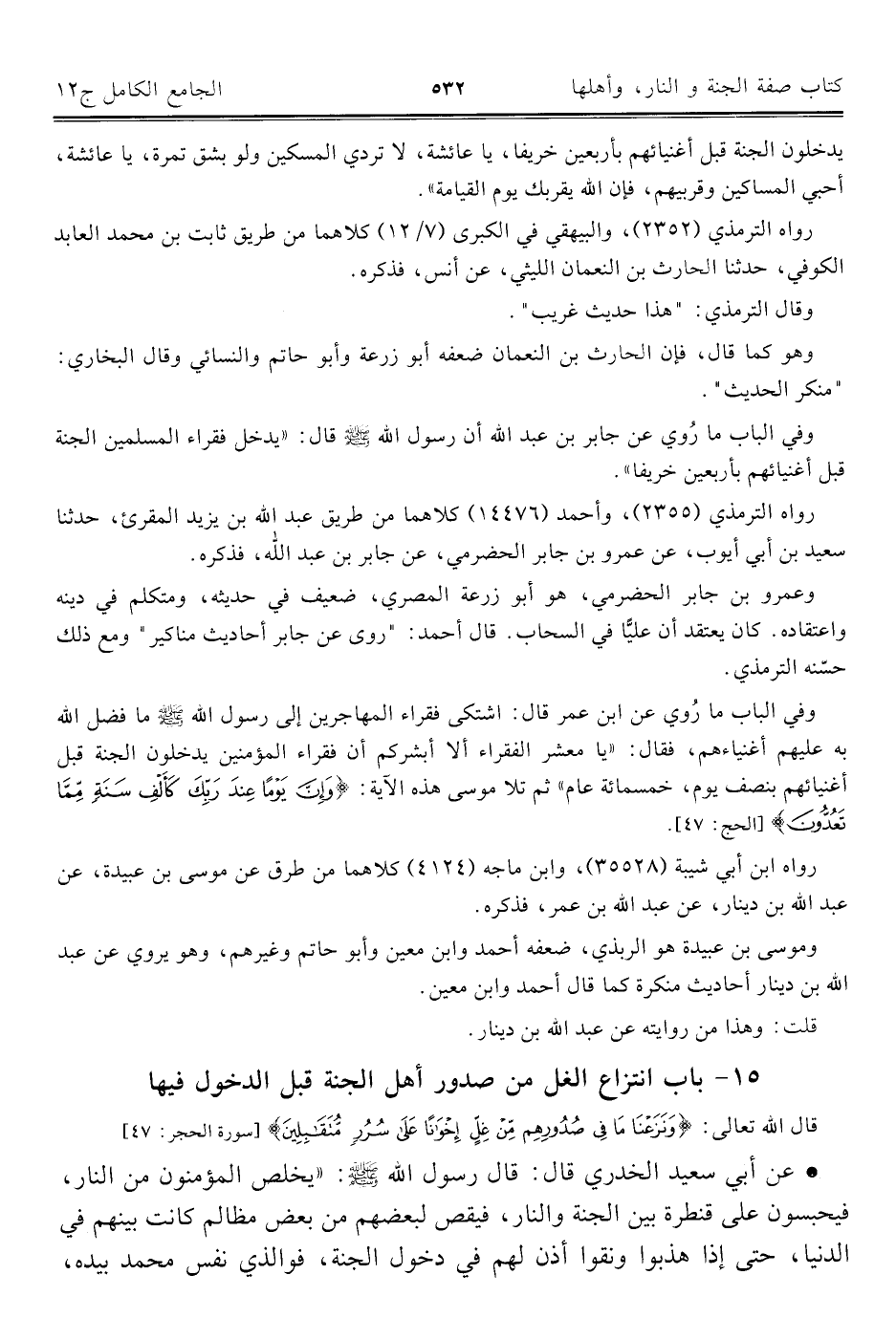 كتاب الجامع الكامل في الحديث الصحيح الشامل المرتب على أبواب الفقه (اسم الجزء: 12)