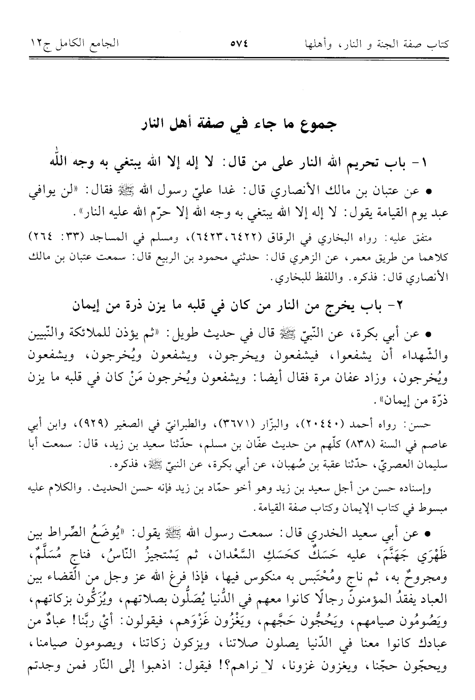 كتاب الجامع الكامل في الحديث الصحيح الشامل المرتب على أبواب الفقه (اسم الجزء: 12)