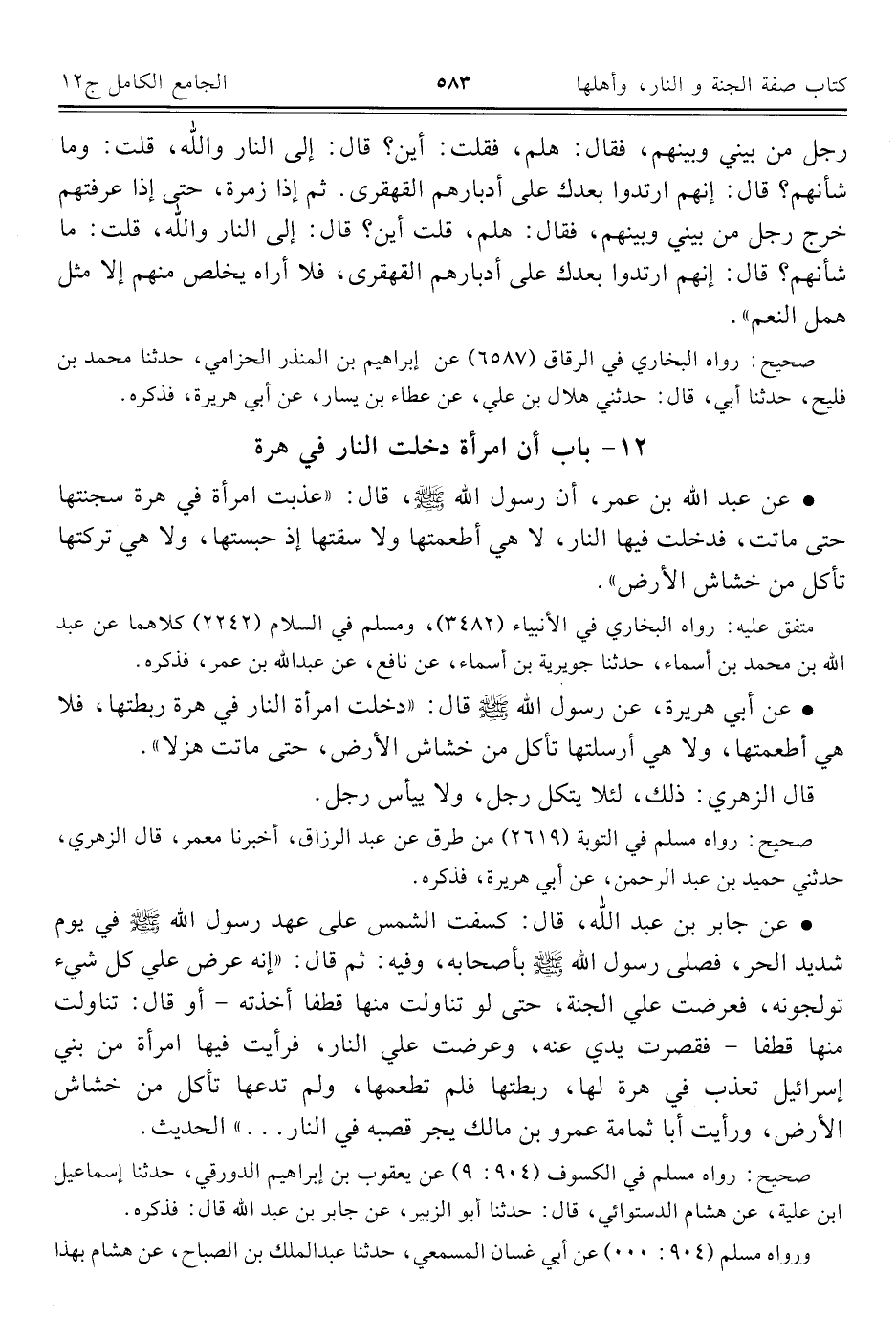 كتاب الجامع الكامل في الحديث الصحيح الشامل المرتب على أبواب الفقه (اسم الجزء: 12)
