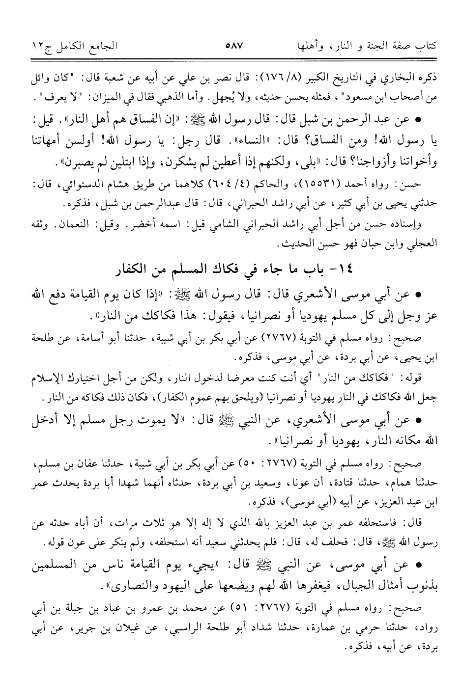 كتاب الجامع الكامل في الحديث الصحيح الشامل المرتب على أبواب الفقه (اسم الجزء: 12)
