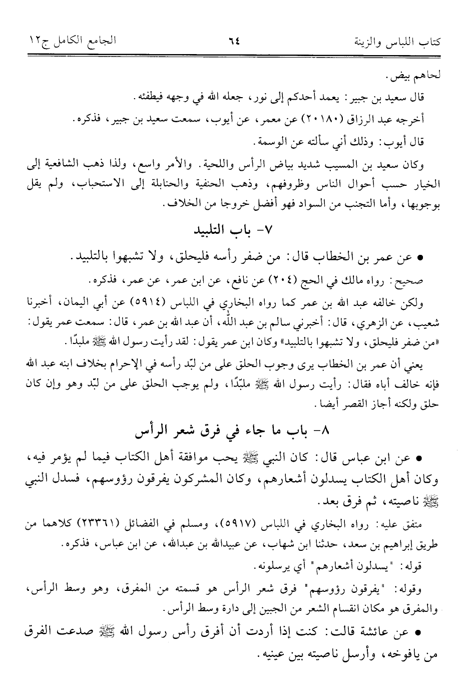 ٨ - باب ما جاء في فرق شعر الرأس