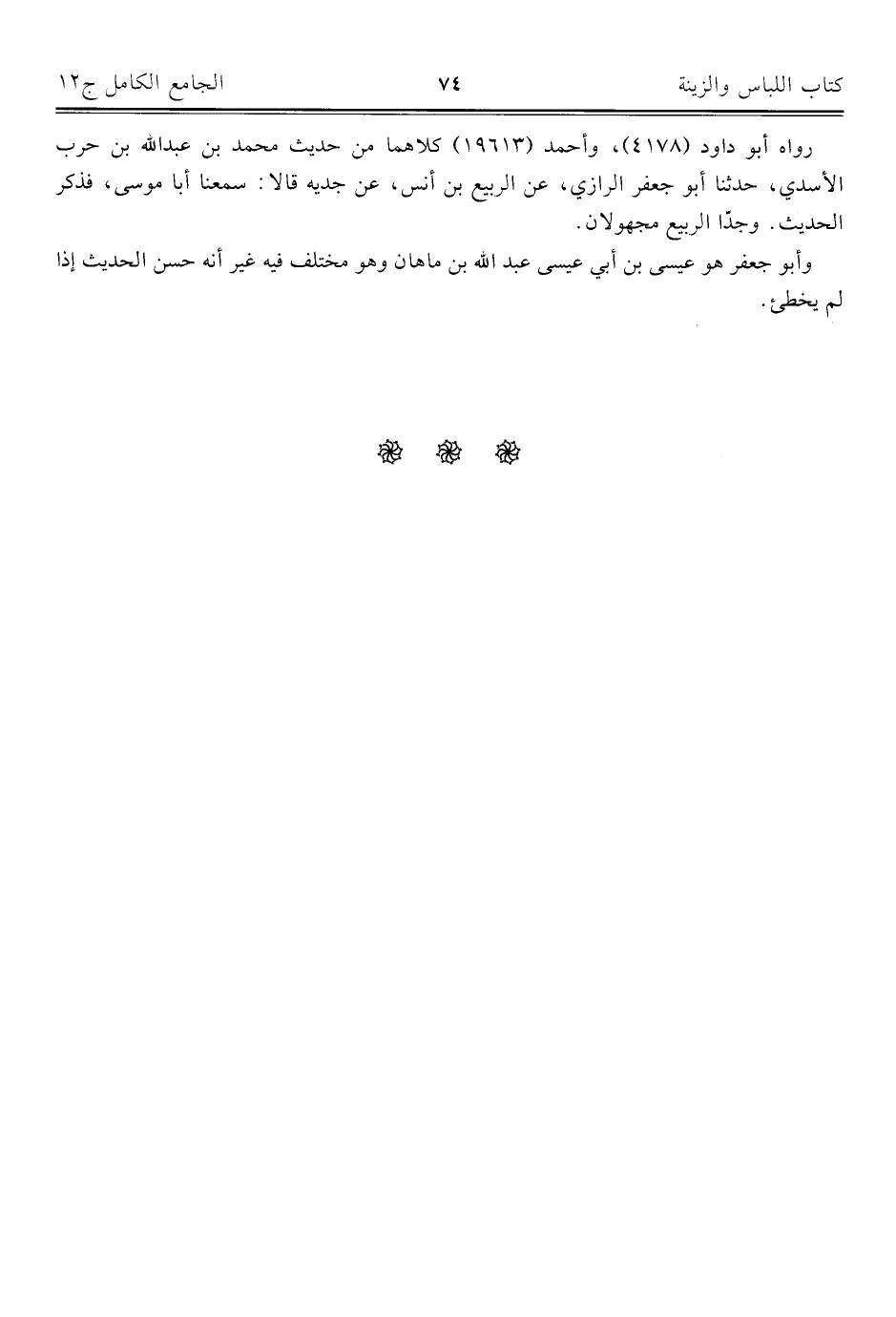 كتاب الجامع الكامل في الحديث الصحيح الشامل المرتب على أبواب الفقه (اسم الجزء: 12)