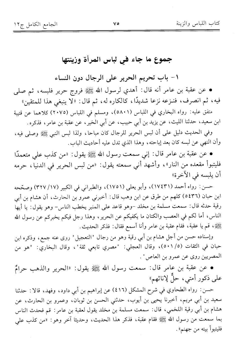 كتاب الجامع الكامل في الحديث الصحيح الشامل المرتب على أبواب الفقه (اسم الجزء: 12)