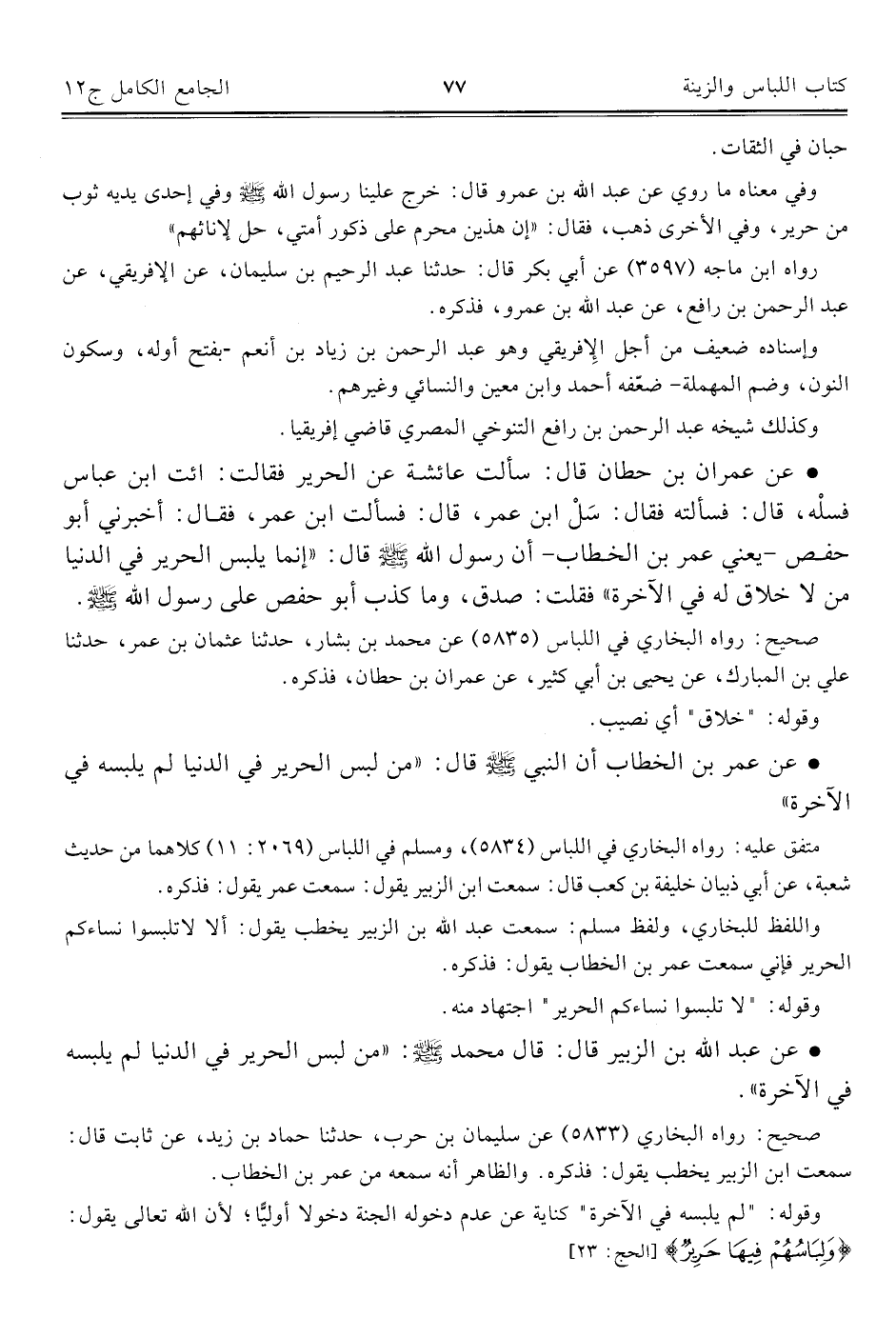 كتاب الجامع الكامل في الحديث الصحيح الشامل المرتب على أبواب الفقه (اسم الجزء: 12)
