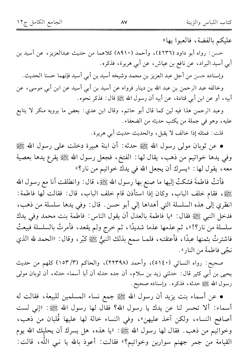 كتاب الجامع الكامل في الحديث الصحيح الشامل المرتب على أبواب الفقه (اسم الجزء: 12)