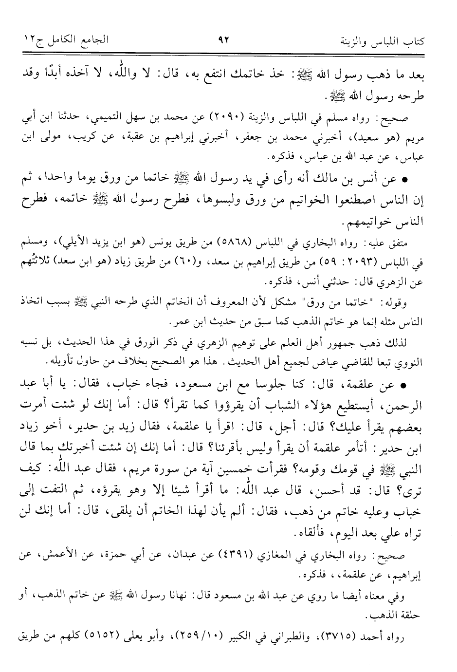 كتاب الجامع الكامل في الحديث الصحيح الشامل المرتب على أبواب الفقه (اسم الجزء: 12)
