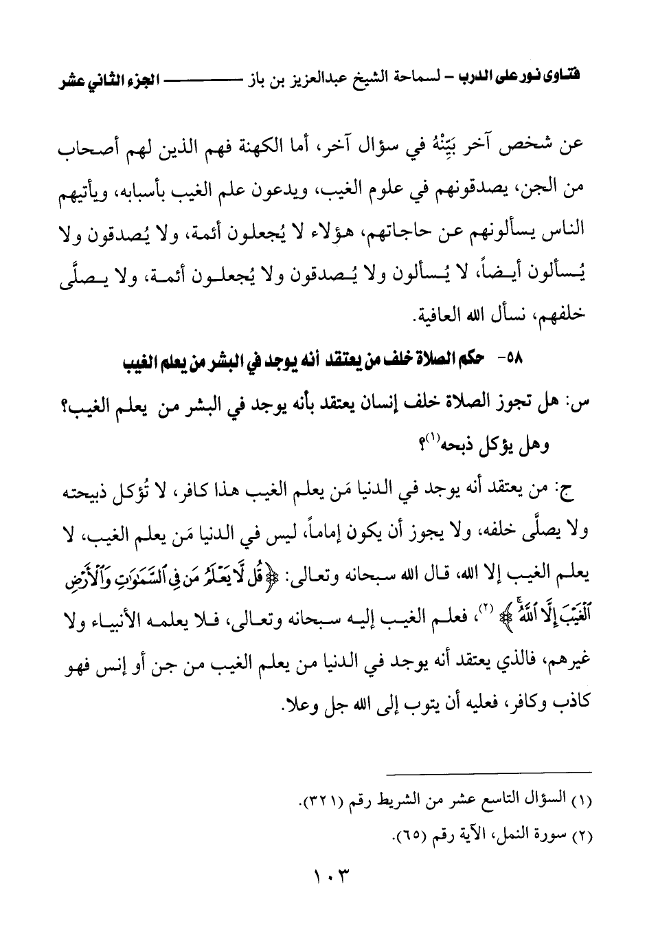 58 - حكم الصلاة خلف من يعتقد أنه يوجد في البشر من يعلم الغيب