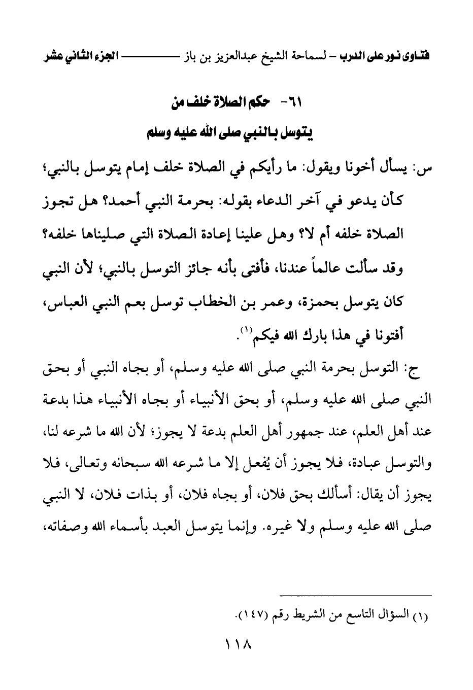 61 - حكم الصلاة خلف من يتوسل بالنبي صلى الله عليه وسلم