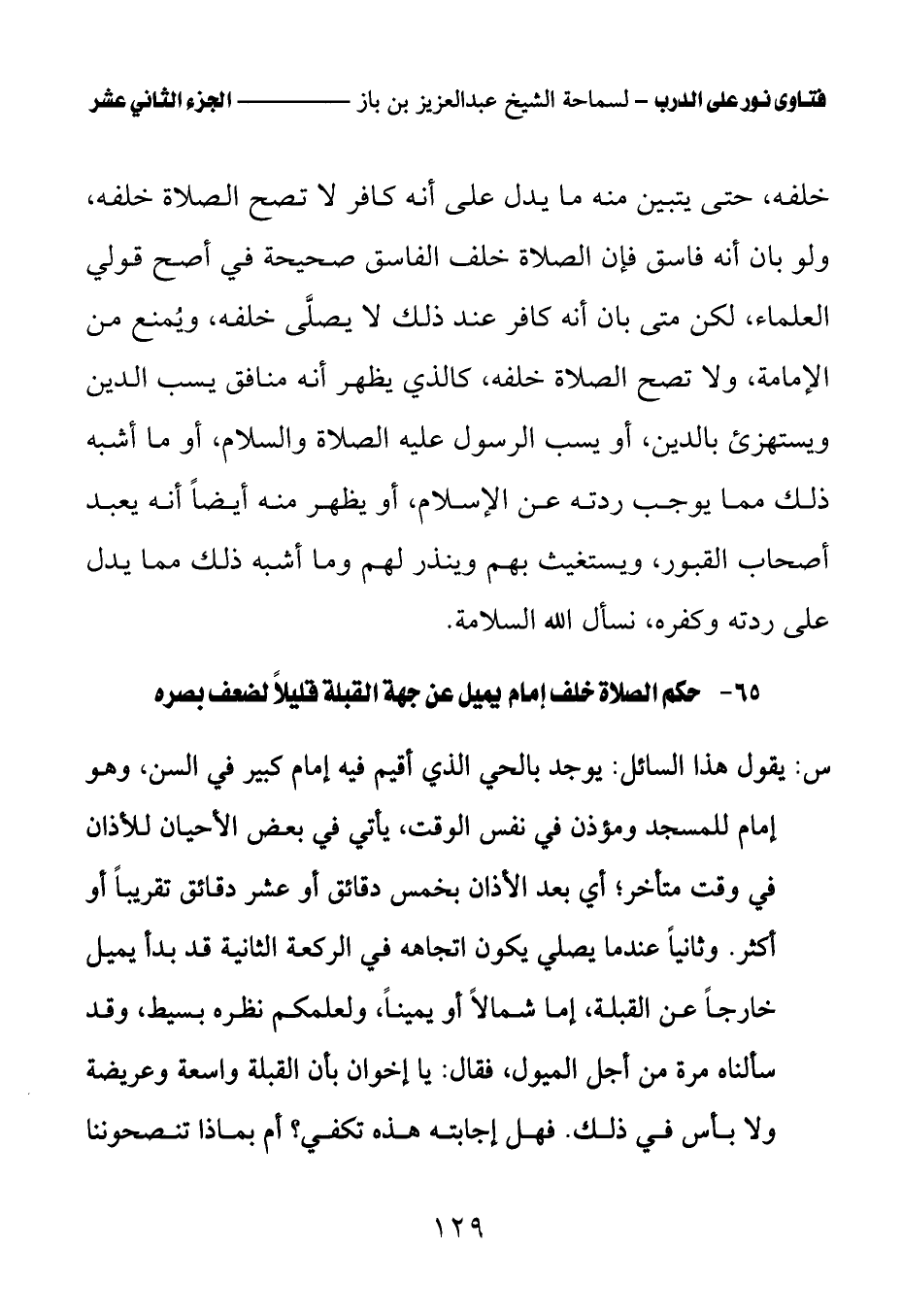 65 - حكم الصلاة خلف إمام يميل عن جهة القبلة قليلا لضعف بصره