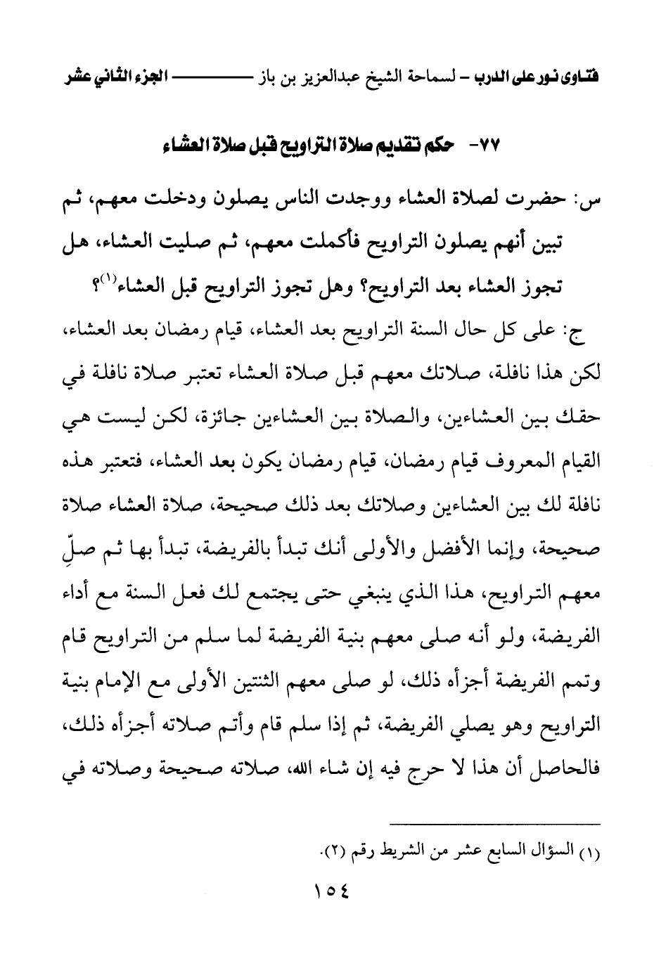 77 - حكم تقديم صلاة التراويح قبل صلاة العشاء