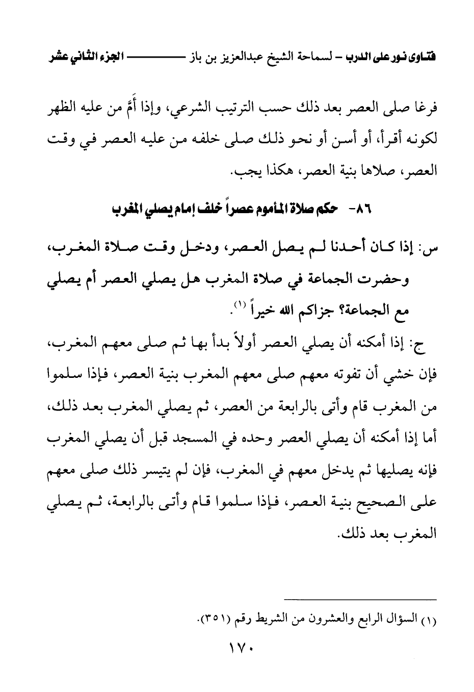 (¬1) السؤال الرابع والعشرون من الشريط رقم (351).