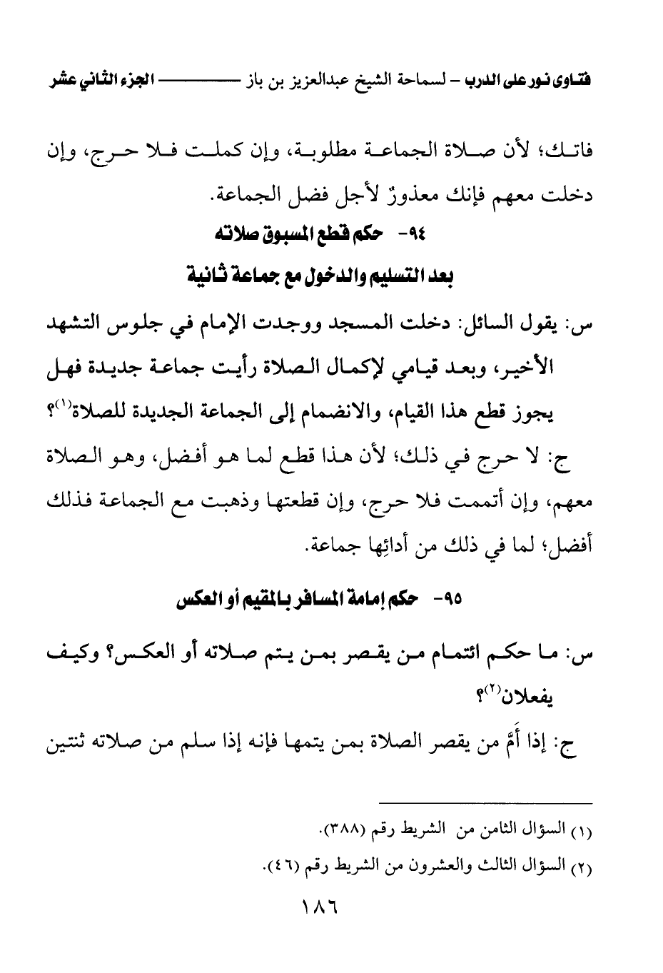 95 - حكم إمامة المسافر بالمقيم أو العكس