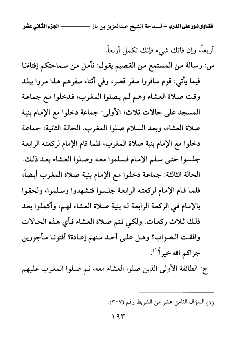 (¬1) السؤال الثامن عشر من الشريط رقم (307).