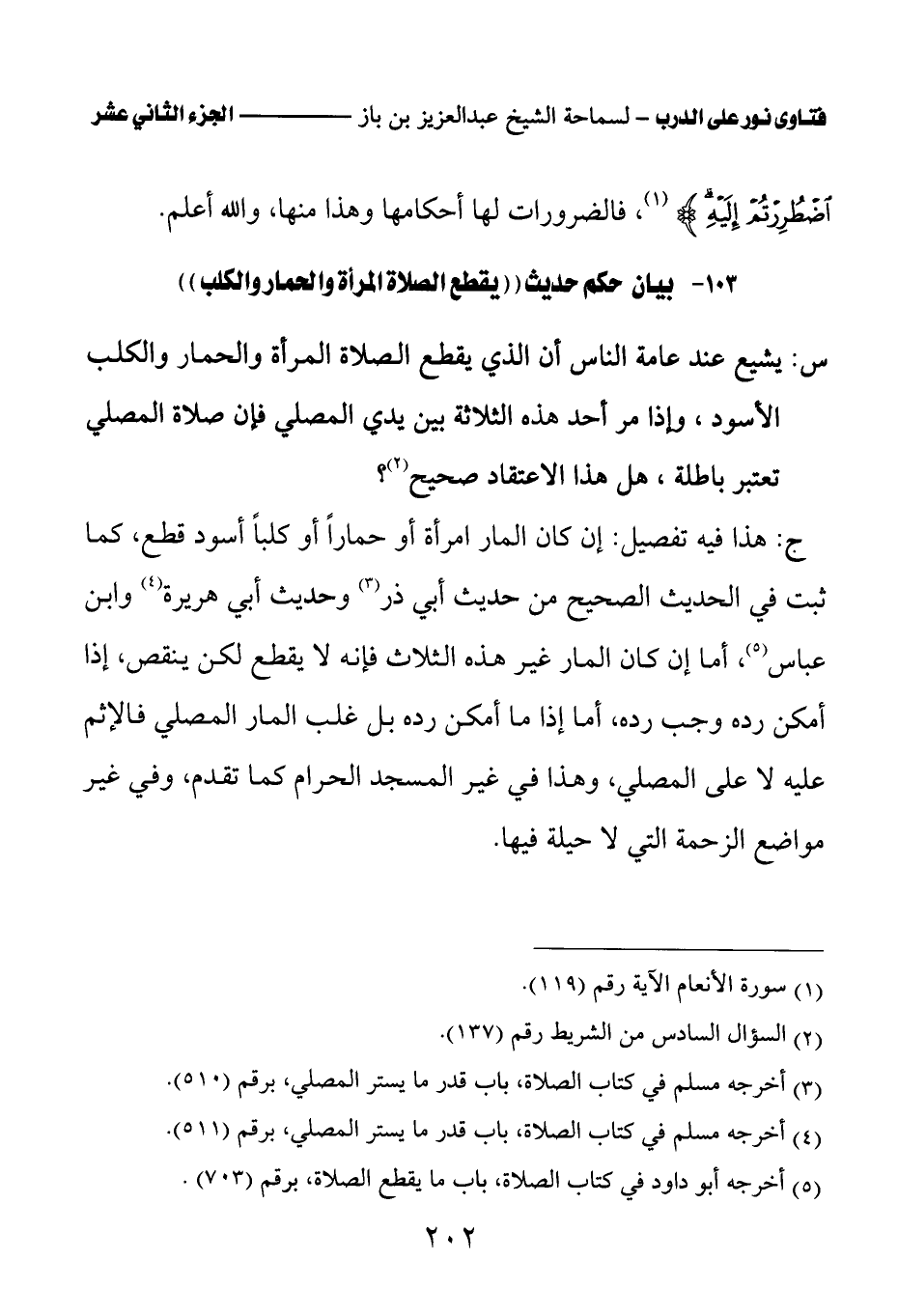103 - بيان حكم حديث «يقطع الصلاة المرأة والحمار والكلب (¬1)»