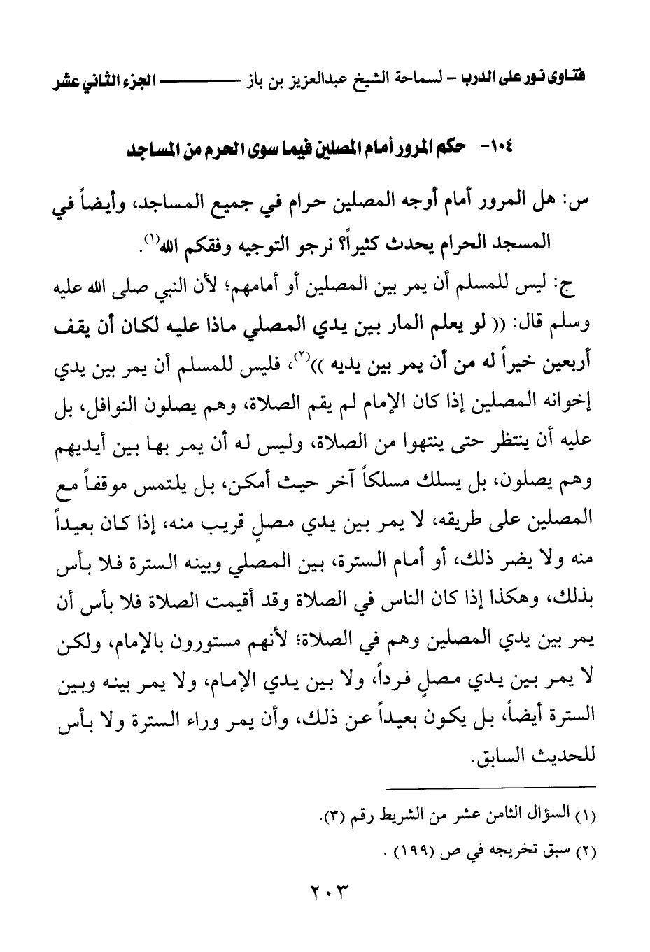 104 - حكم المرور أمام المصلين فيما سوى الحرم من المساجد