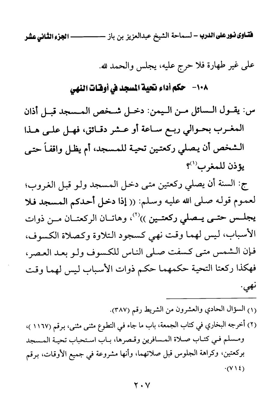 108 - حكم أداء تحية المسجد في أوقات النهي
