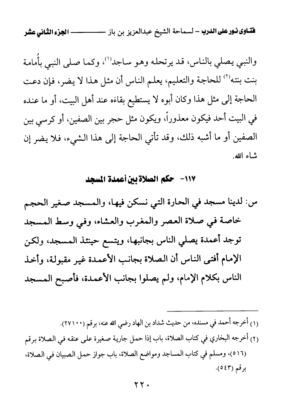 117 - حكم الصلاة بين أعمدة المسجد