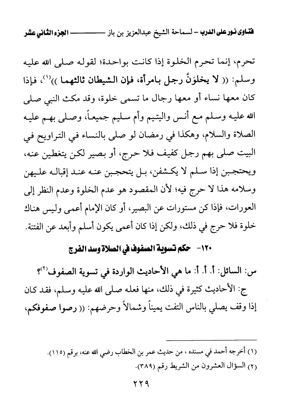 س: السائل: أ. أ. أ: ما هي الأحاديث الواردة في تسوية الصفوف ? (¬1)
