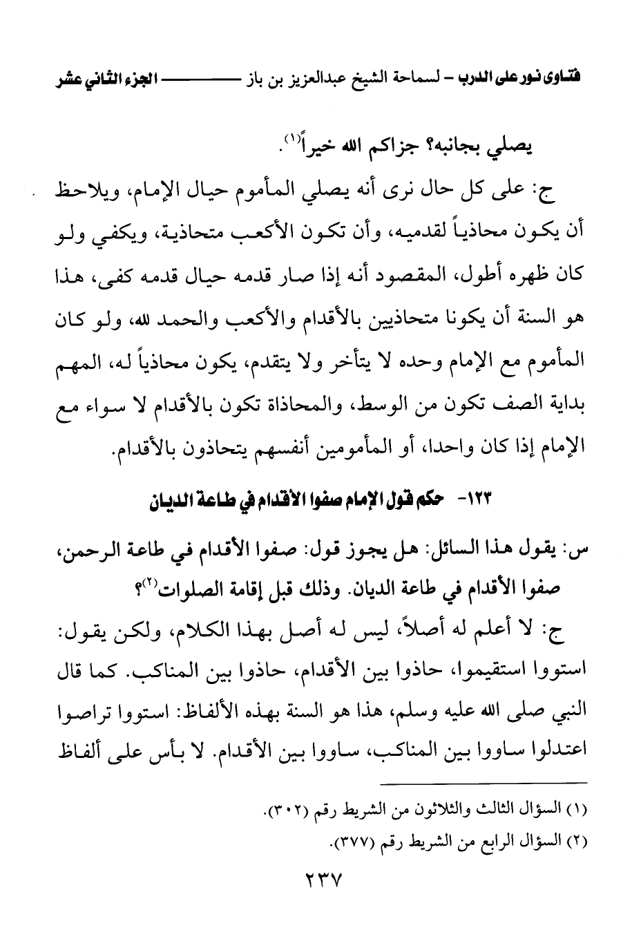 123 - حكم قول الإمام صفوا الأقدام في طاعة الديان