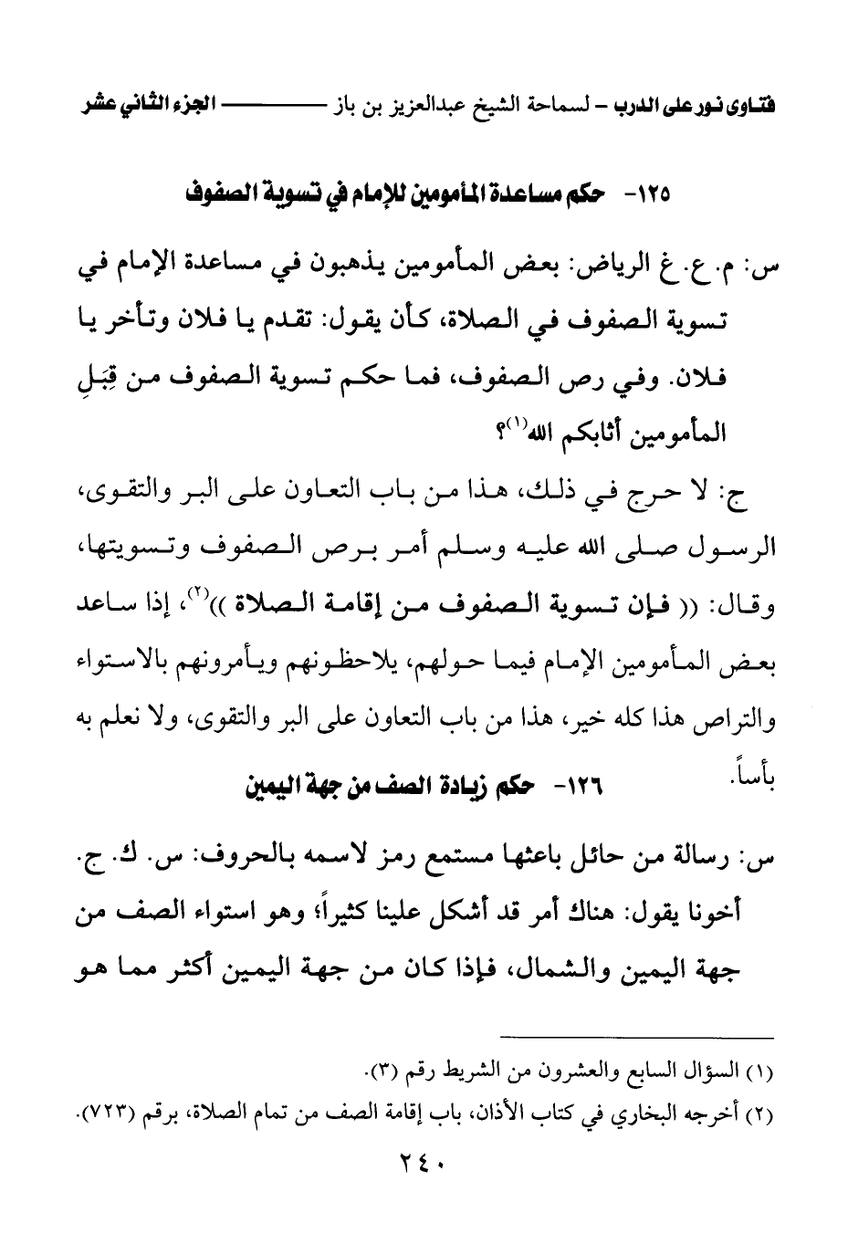125 - حكم مساعدة المأمومين للإمام في تسوية الصفوف