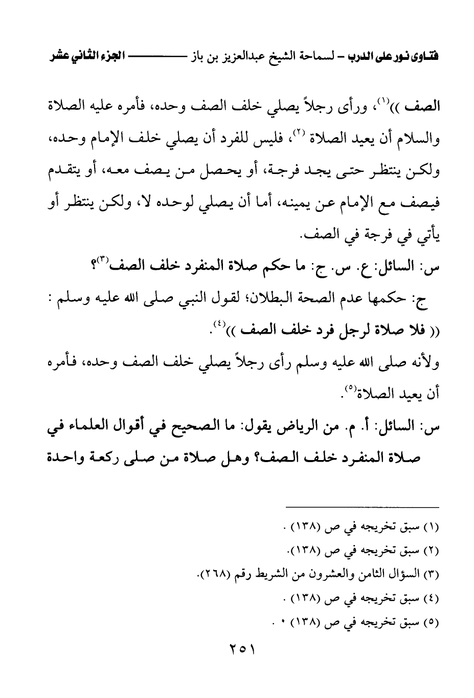 س: السائل: ع. س. ج: ما حكم صلاة المنفرد خلف الصف (¬1)