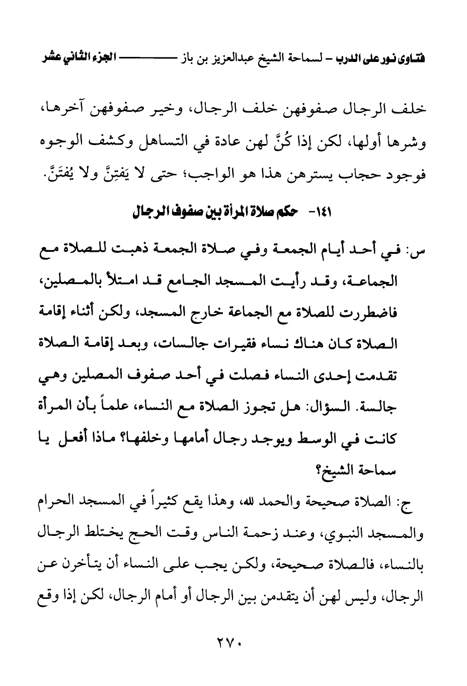 141 - حكم صلاة المرأة بين صفوف الرجال