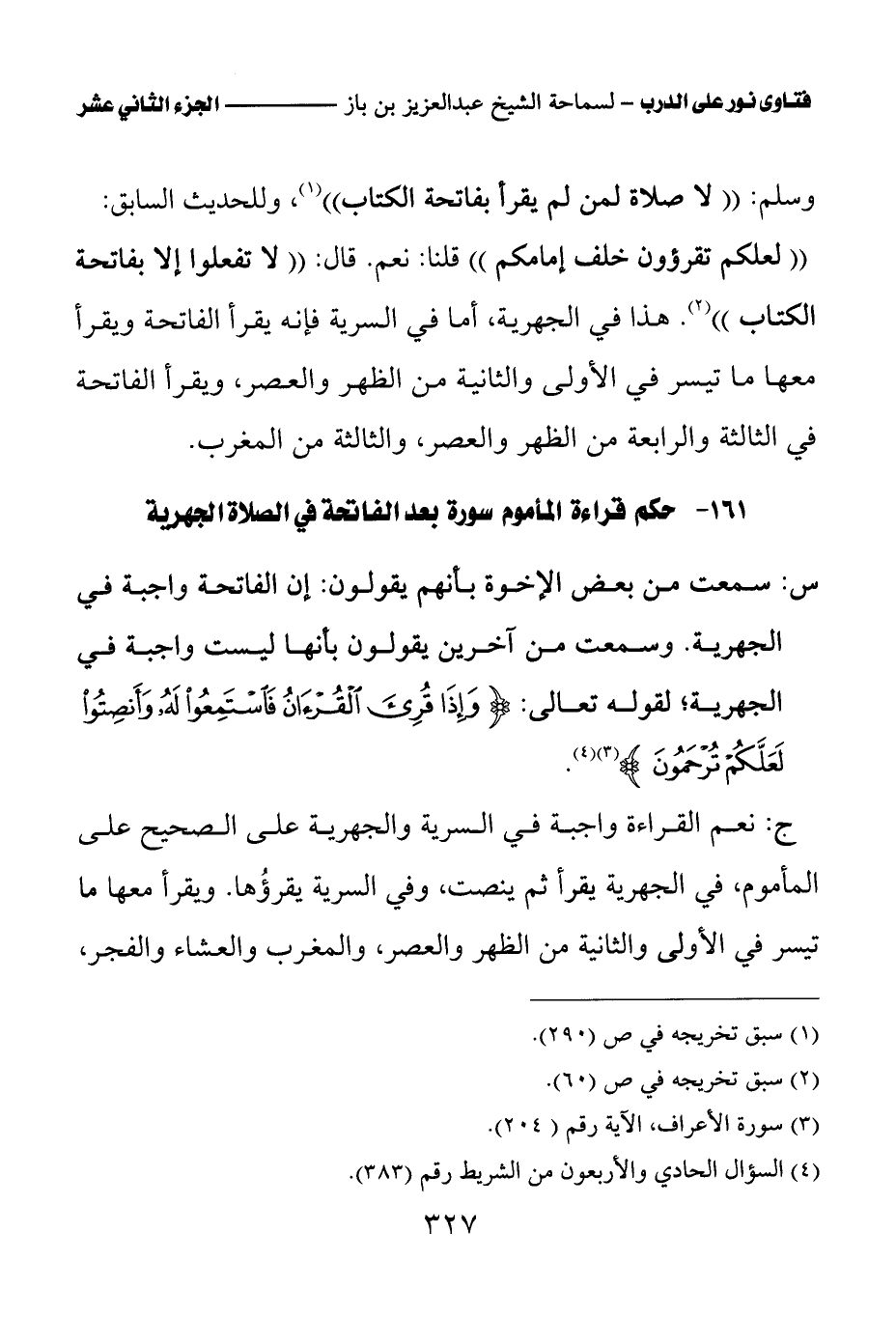 161 - حكم قراءة المأموم سورة بعد الفاتحة في الصلاة الجهرية