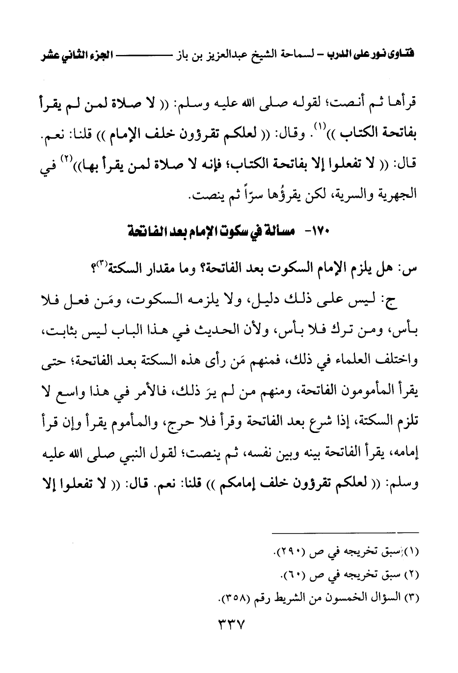 170 - مسألة في سكوت الإمام بعد الفاتحة